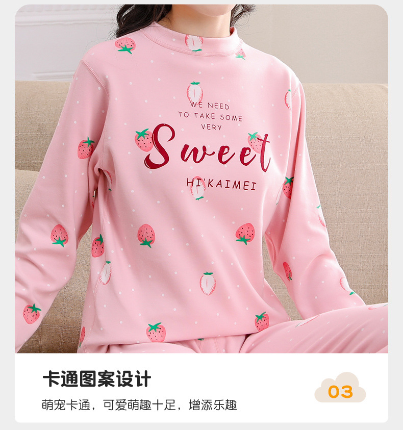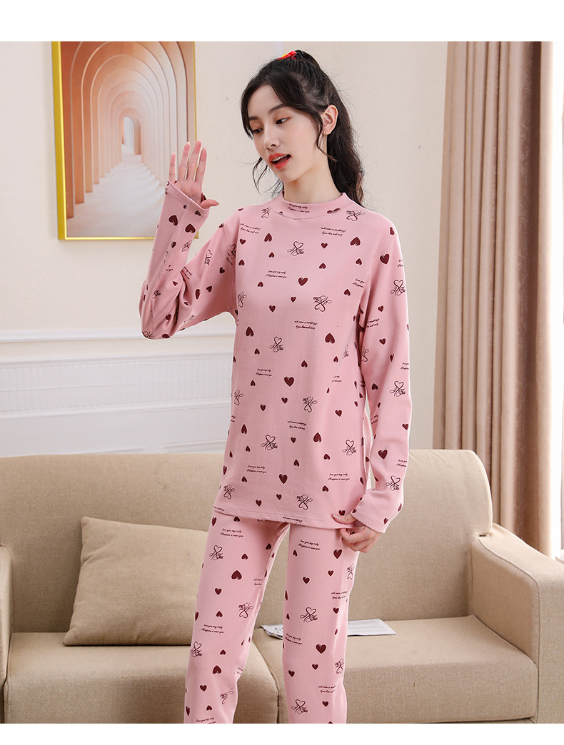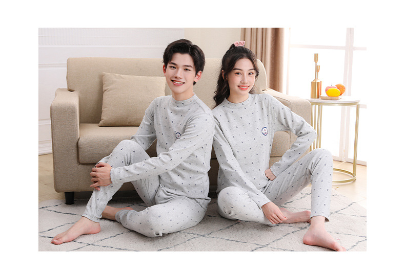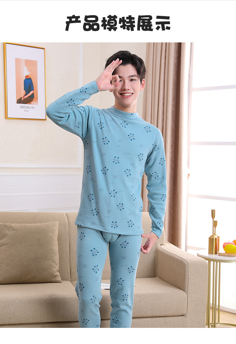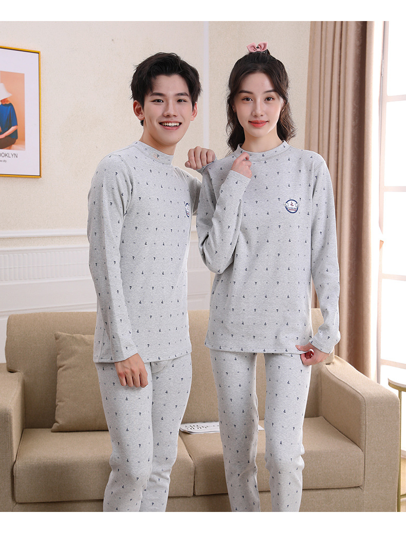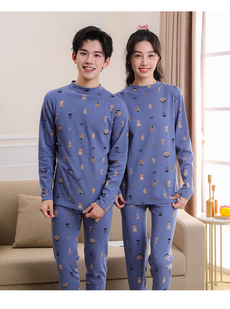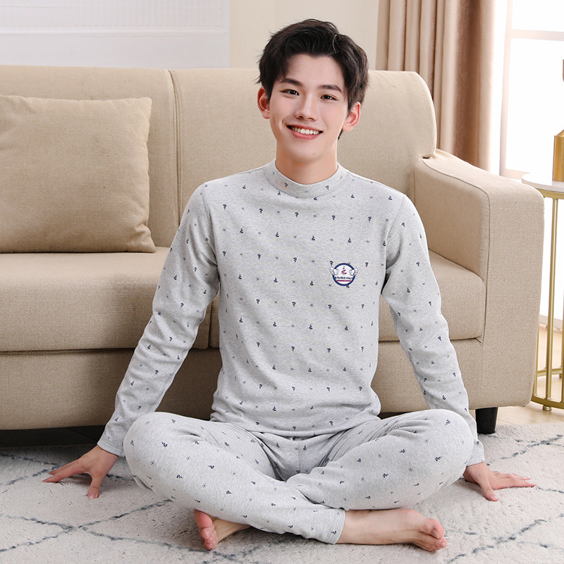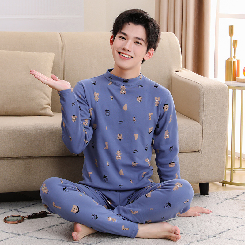 청소년 열 속옷 Shirong 면 세트 큰 어린이 학생 소년 소녀 가을 옷과 바지 하프 하이 칼라 가정 옷스토어 가기