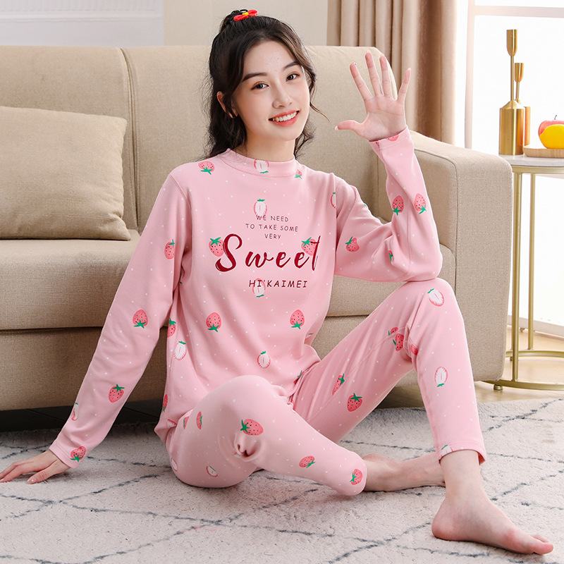 청소년 열 속옷 Shirong 면 세트 큰 어린이 학생 소년 소녀 가을 옷과 바지 하프 하이 칼라 가정 옷