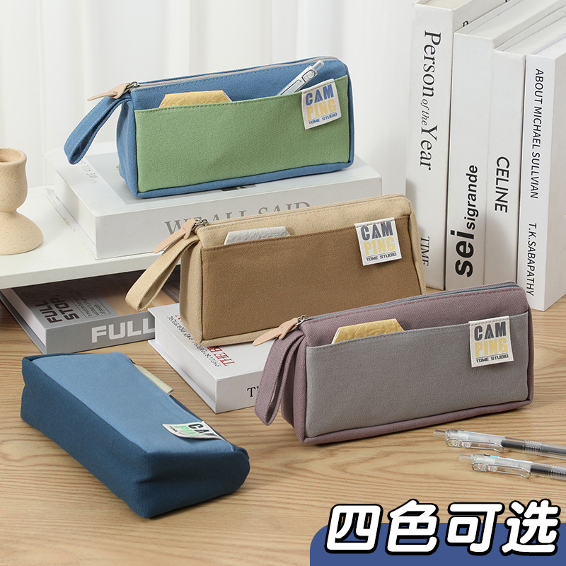 Tumi 소년을 위한 간단한 큰 삼각형 연필 가방, 중학교 및 고등학생 빨 수 있는 더러운 방지 연필 가방 대용량 문구 가방