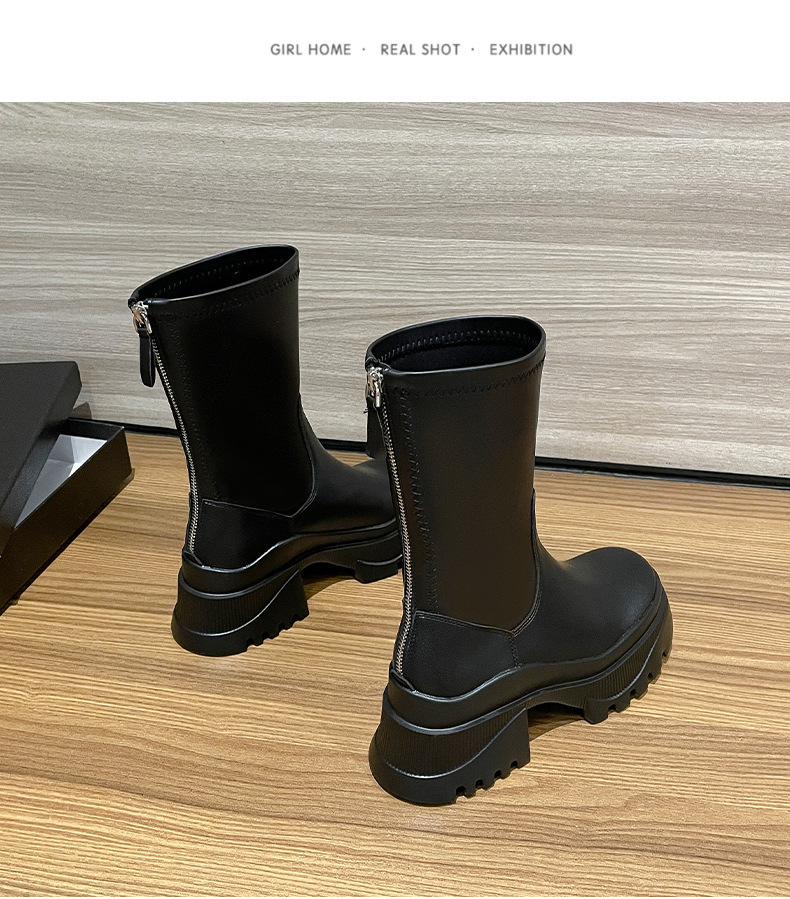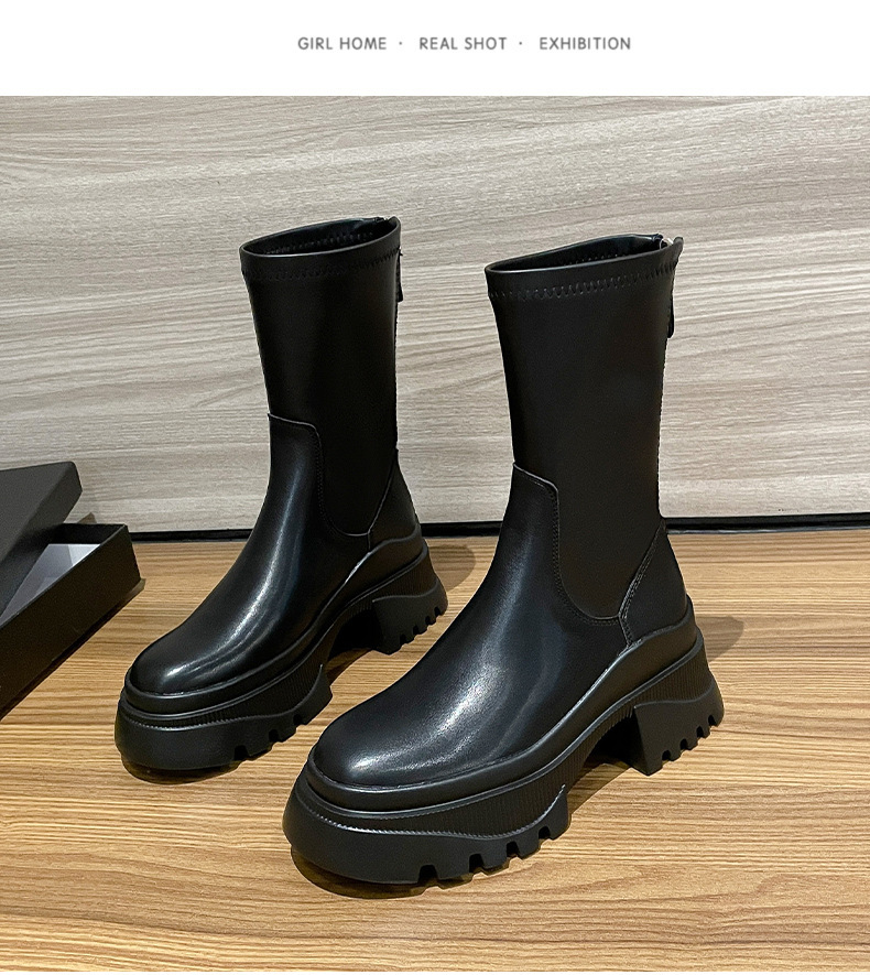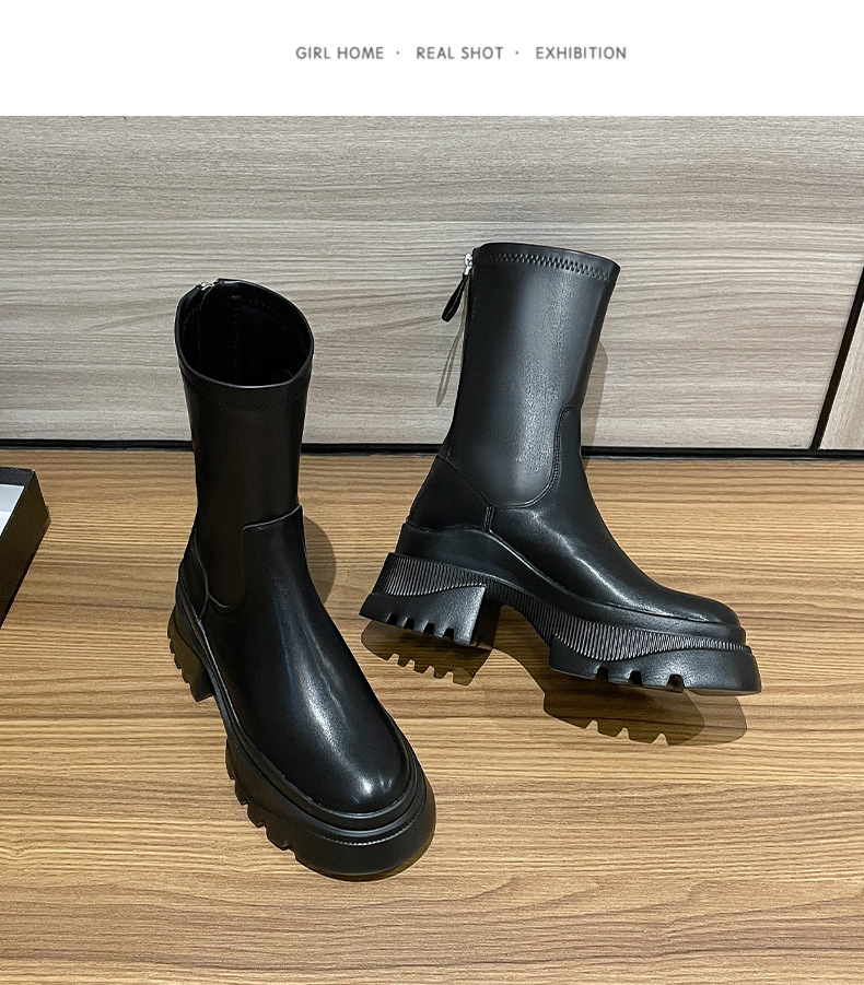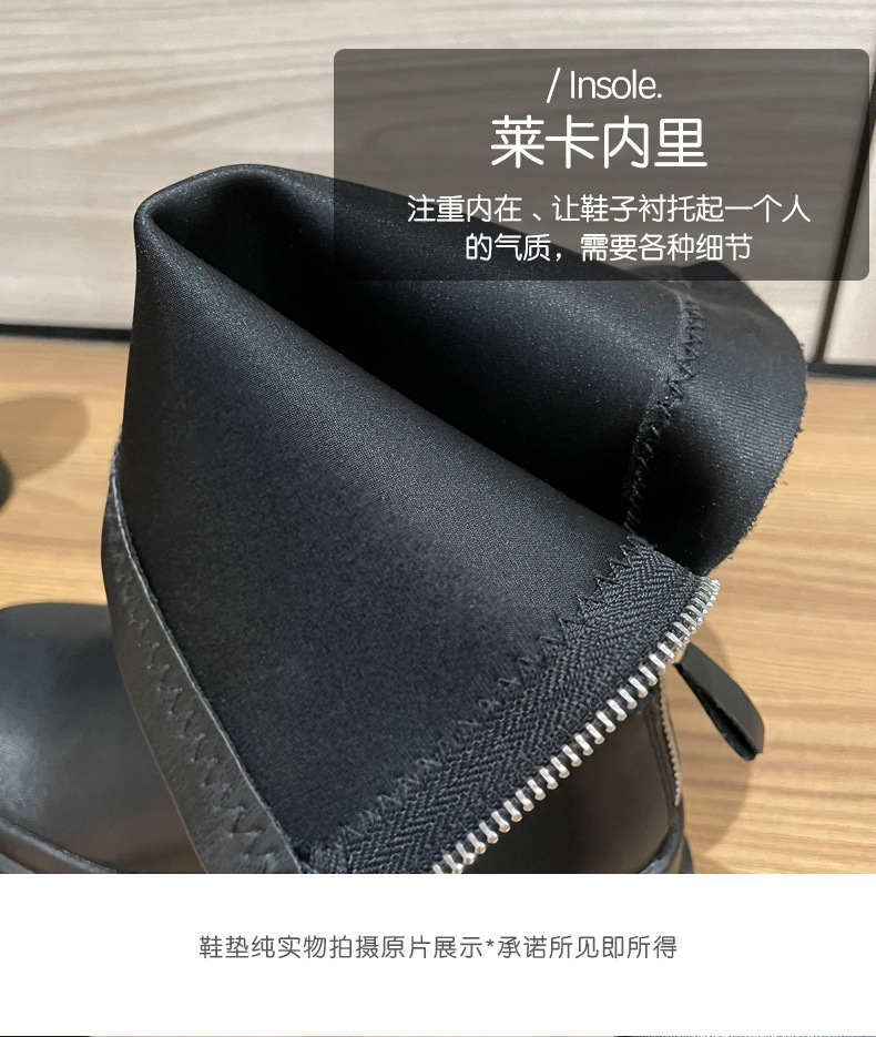 2023 새로운 가을과 겨울 부츠 정품 가죽 미디 부츠 짧은 부츠 여성용 스트레치 얇은 부츠 작은 두꺼운 바닥 마틴 부츠스토어 가기