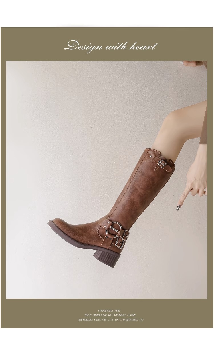 플러스 사이즈 여성용 무릎 위까지 오는 부츠, 두꺼운 굽의 하이탑 부츠, 두꺼운 다리용 라이더 부츠, 레트로 웨스턴 카우보이 부츠, 41-43 사이즈, 플러스 사이즈 버전스토어 가기