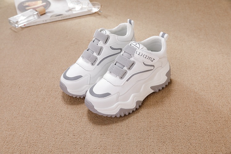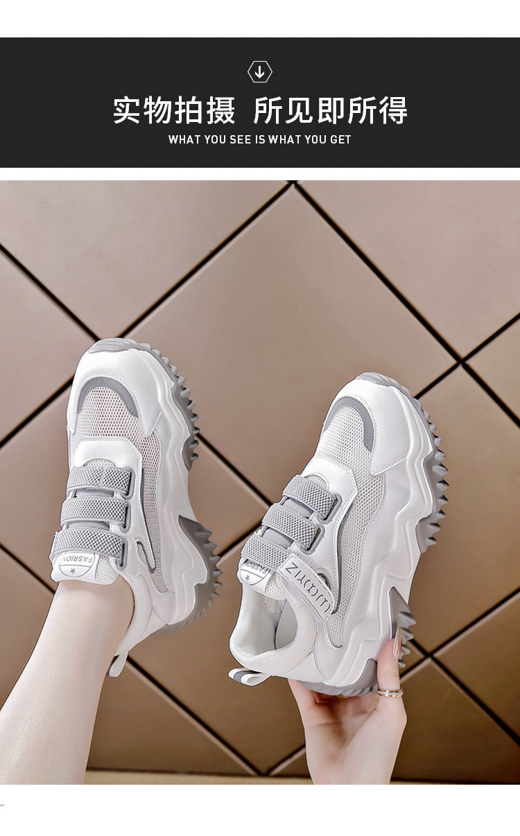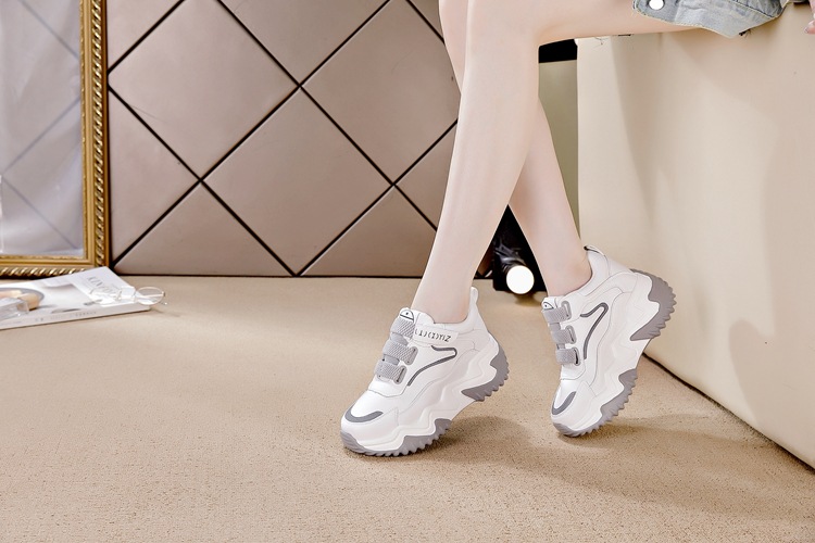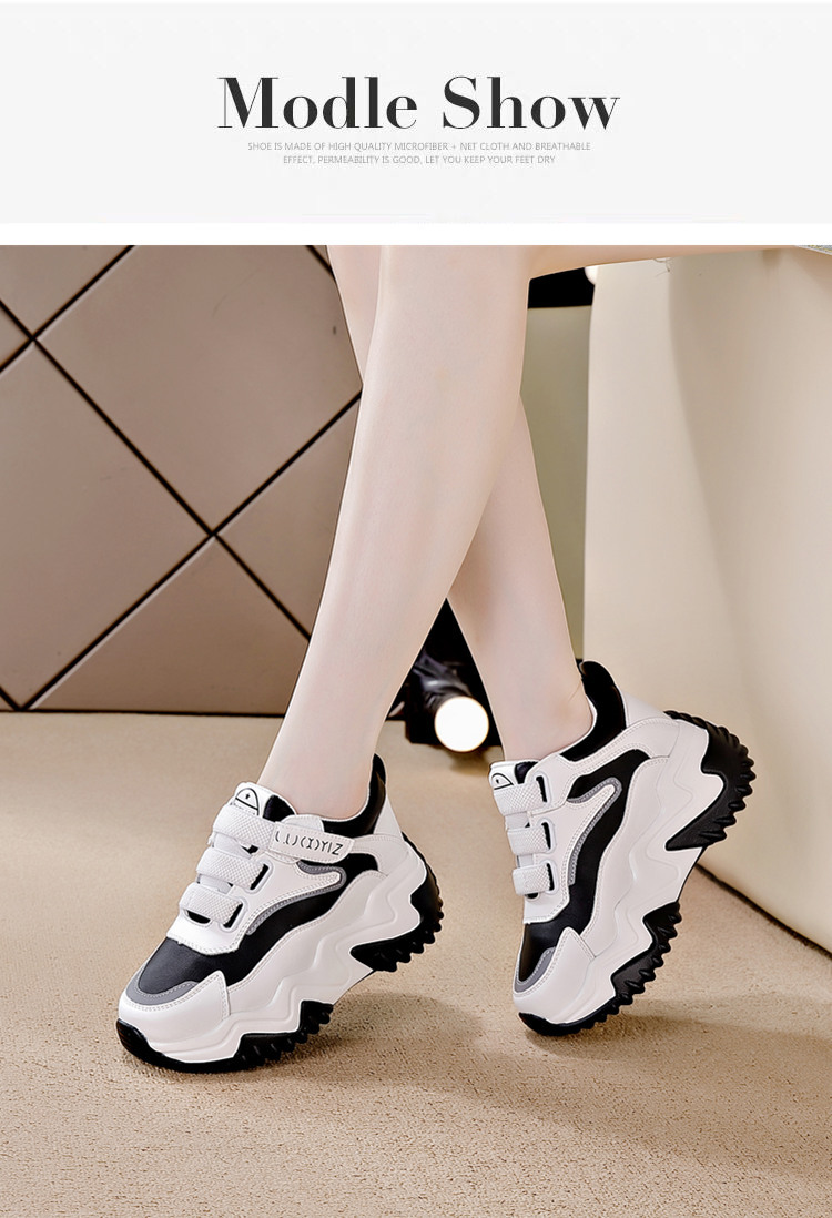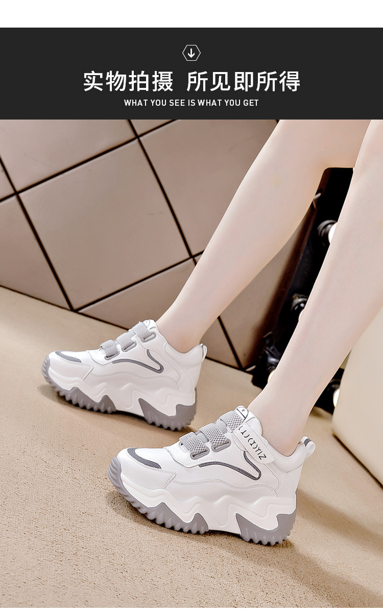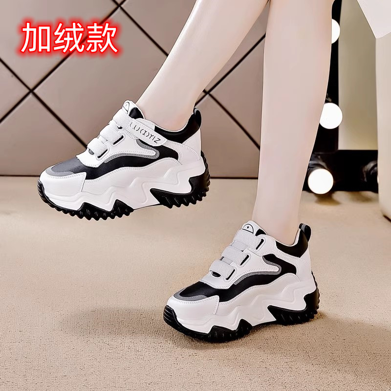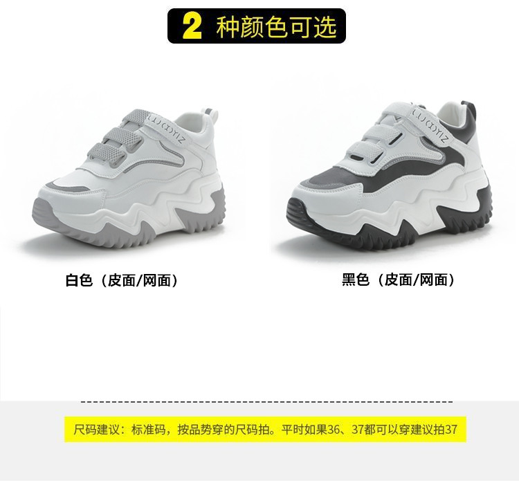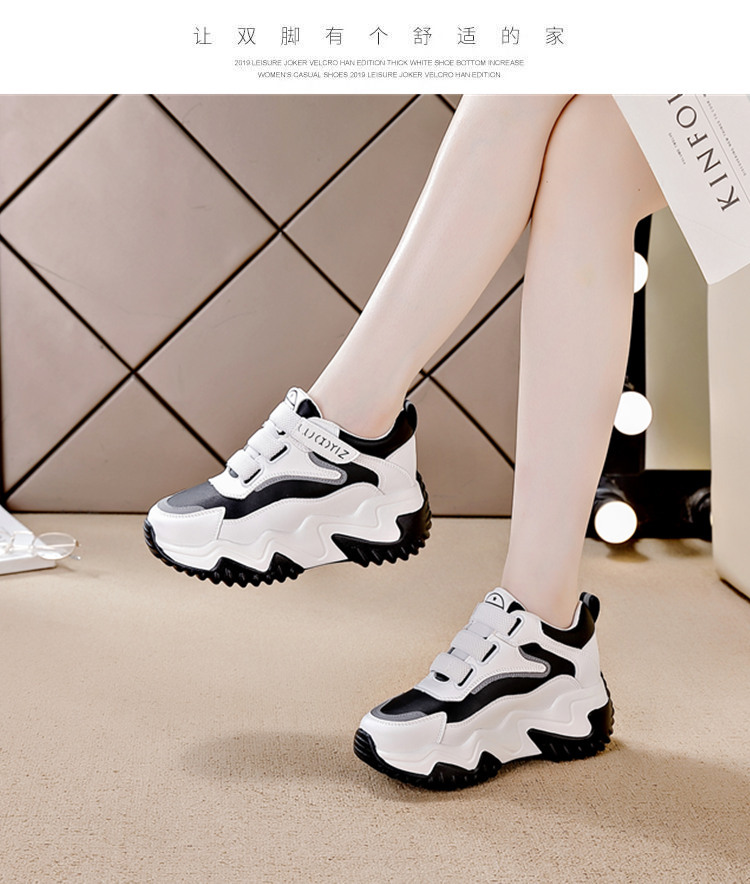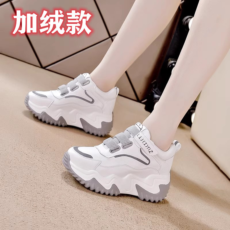 숨겨진 높이 여성 신발 두꺼운 밑창 캐주얼 신발 가을과 겨울 새로운 벨크로 경량 로우 탑 싱글 레이어 신발 통기성 머핀 운동화스토어 가기