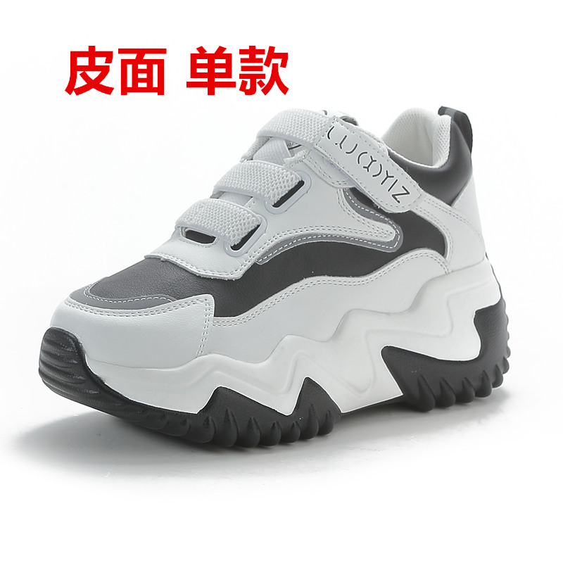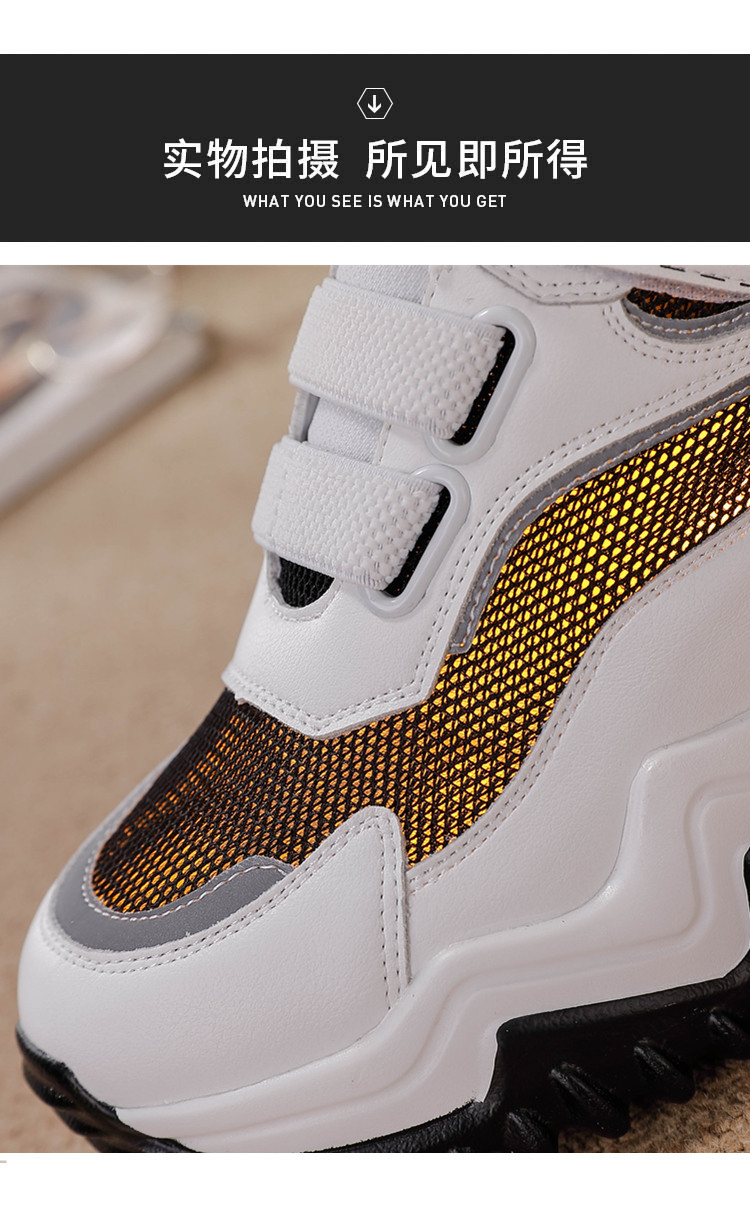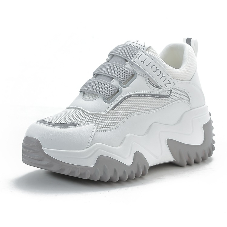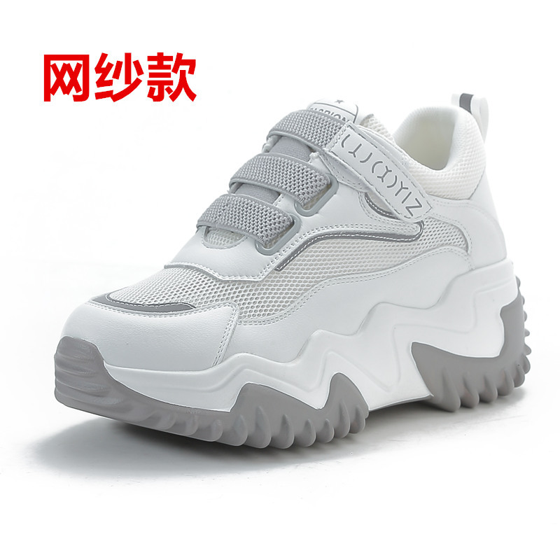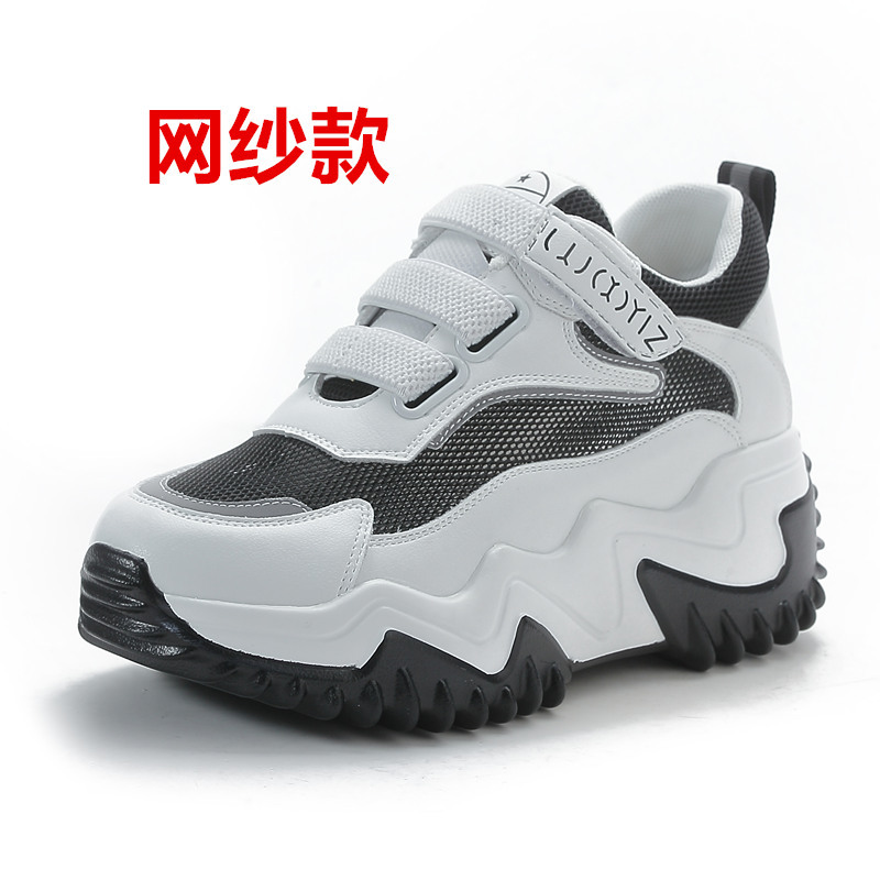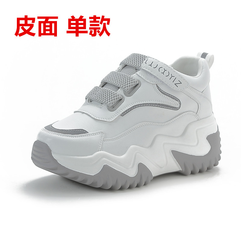 숨겨진 높이 여성 신발 두꺼운 밑창 캐주얼 신발 가을과 겨울 새로운 벨크로 경량 로우 탑 싱글 레이어 신발 통기성 머핀 운동화