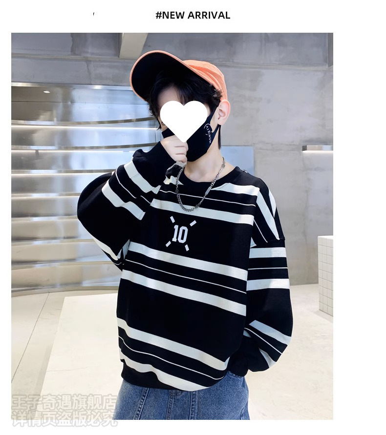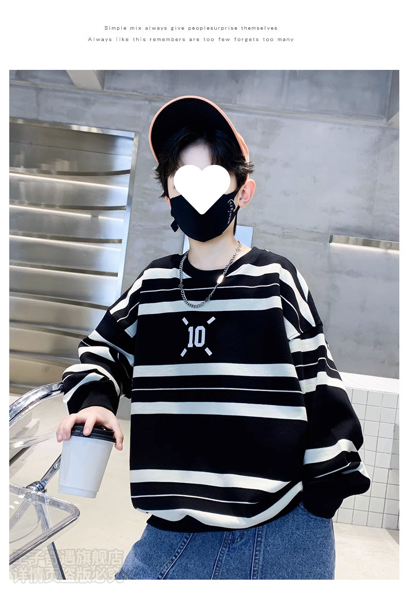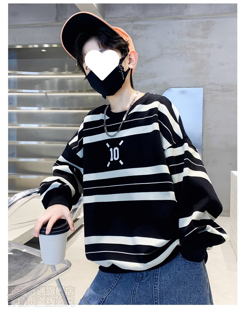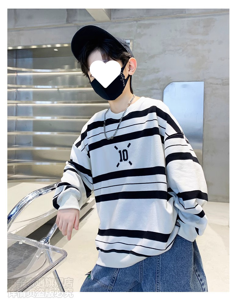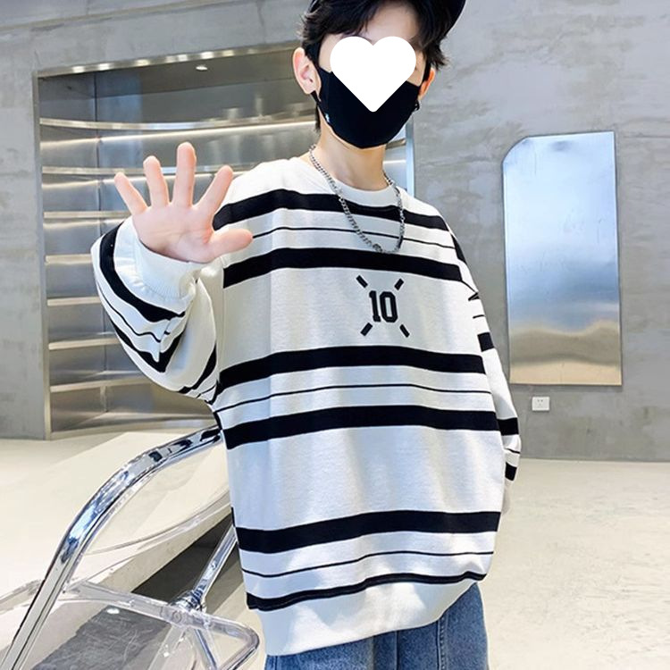 소년 가을 스트라이프 땀 2023 새로운 멋진 잘 생긴 소년 느슨한 라운드 넥 긴 소매 티셔츠 한국 얇은 탑스토어 가기