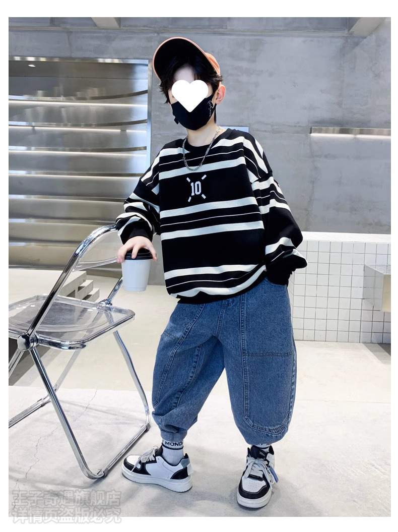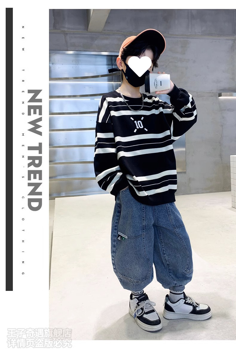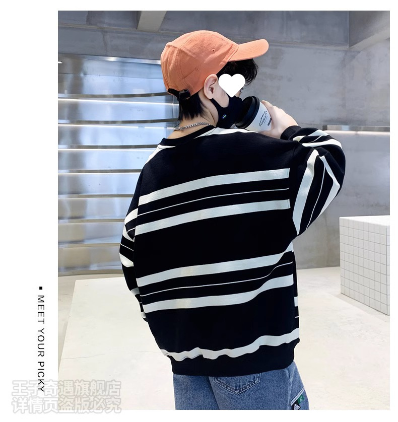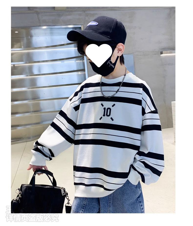 소년 가을 스트라이프 땀 2023 새로운 멋진 잘 생긴 소년 느슨한 라운드 넥 긴 소매 티셔츠 한국 얇은 탑스토어 가기