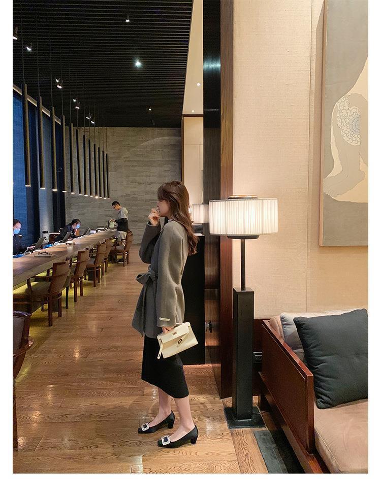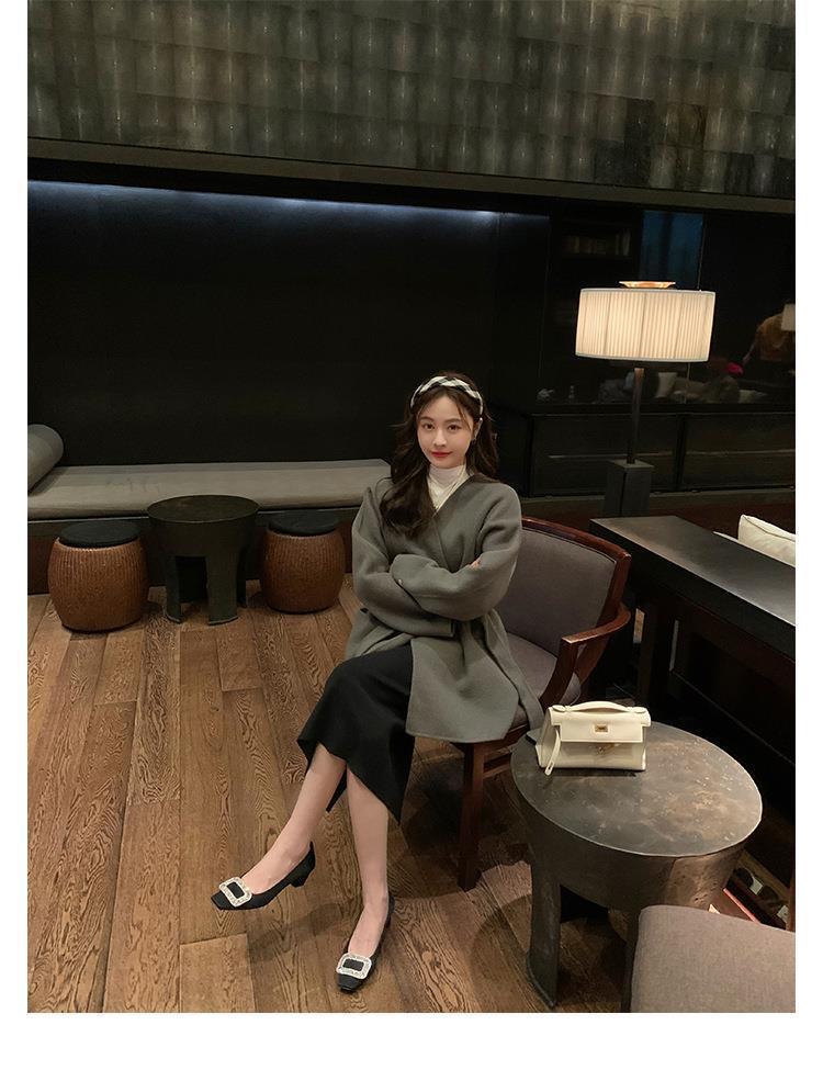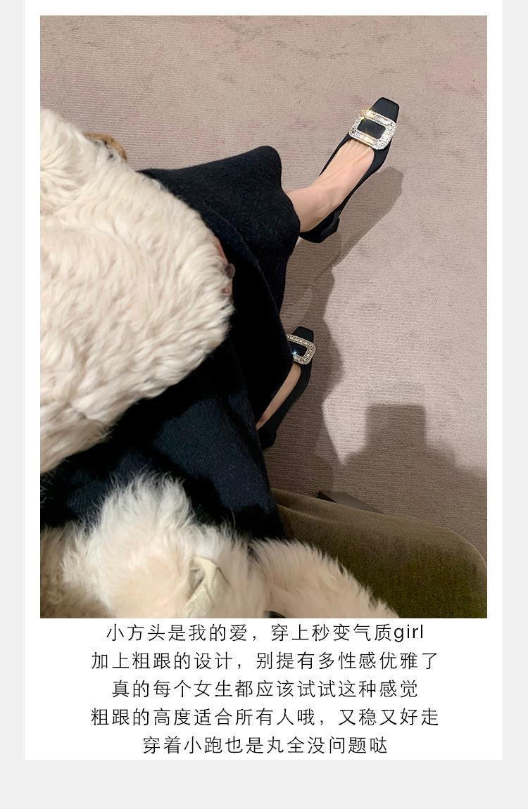 포도 어머니 스튜디오리 늦은 밤 바람 기질 모조 다이아몬드 스퀘어 버클 스퀘어 헤드 얕은 입 미들 힐 실크 통근 신발 여성