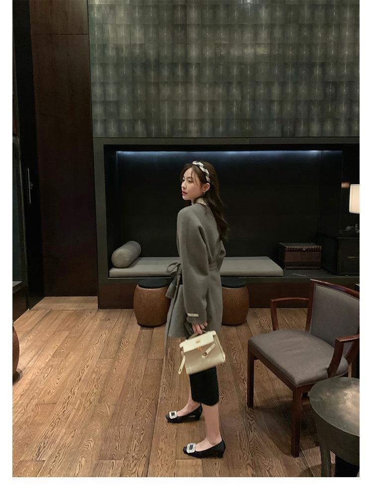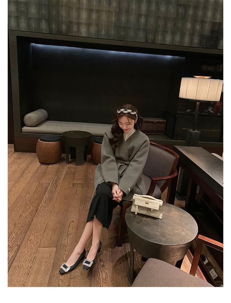 포도 어머니 스튜디오리 늦은 밤 바람 기질 모조 다이아몬드 스퀘어 버클 스퀘어 헤드 얕은 입 미들 힐 실크 통근 신발 여성스토어 가기