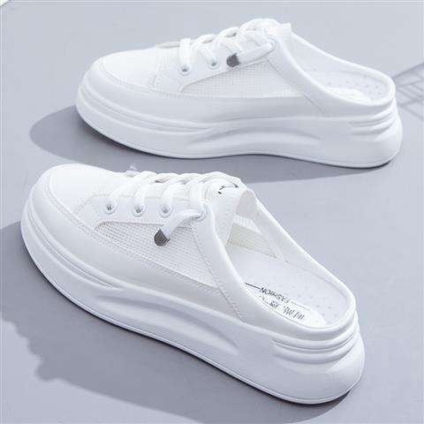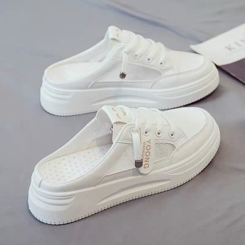 여성용 반미립 흰색 신발, 2025년 신상 여름 두꺼운 밑창 아우터, 패셔너블한 게으른 트렌디한 샌들과 발가락 슬리퍼.스토어 가기