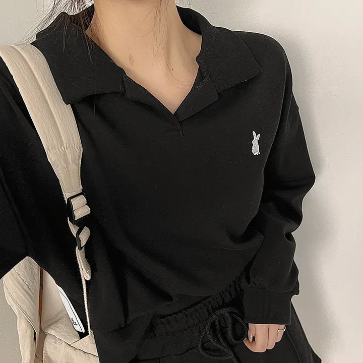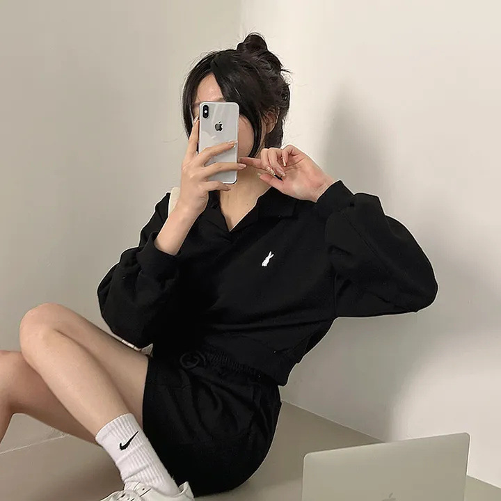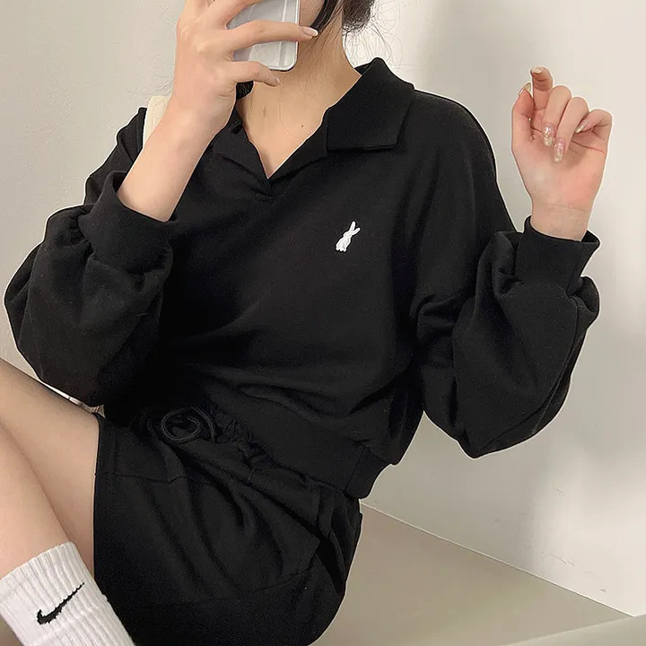 100 면 한국 스타일 캐주얼 스포츠 세트 여자의 긴 소매 봄과 가을 폴로 칼라 스웨터 짧은 치마 2 종 세트 단색스토어 가기