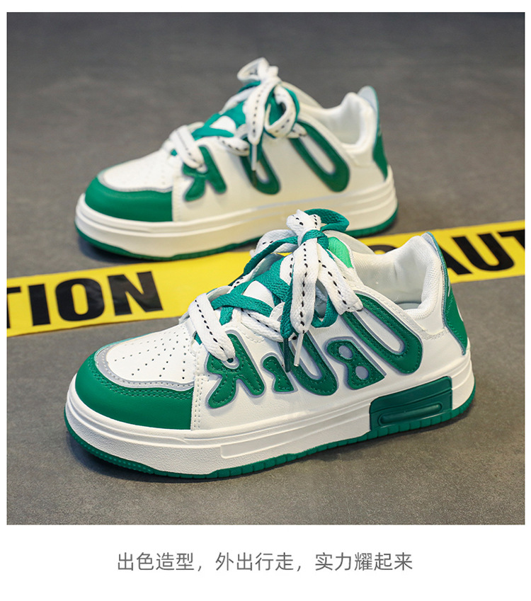 보드 신발 학생 신발 봄과 가을 2023 새로운 가죽 대형 어린이 캐주얼 흰색 신발 여성 신발 플랫 로우 슈즈