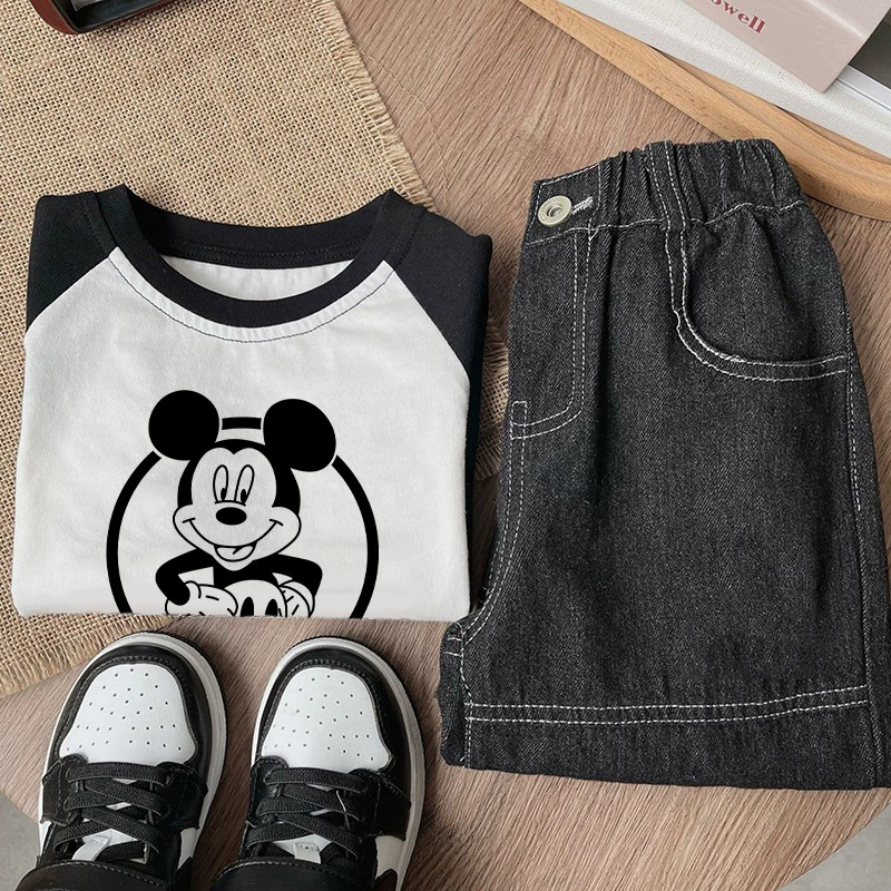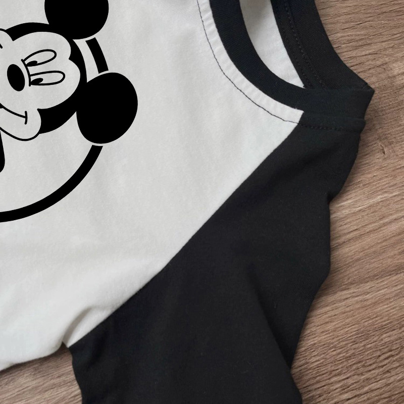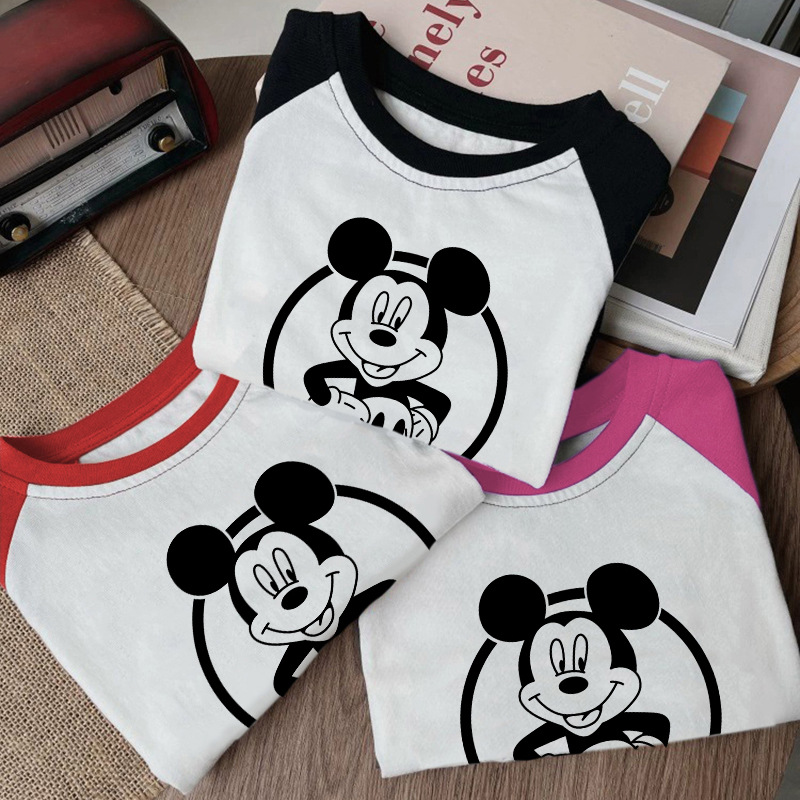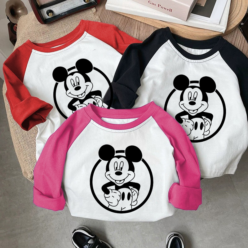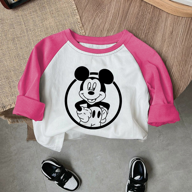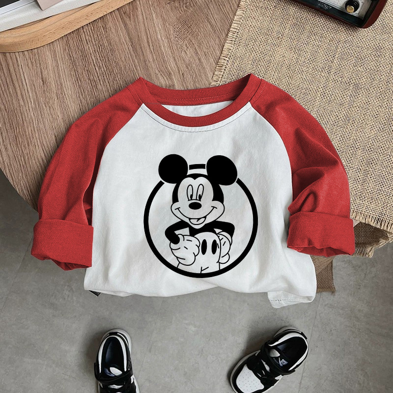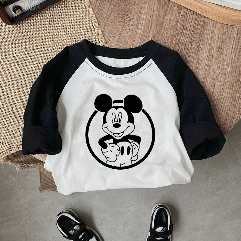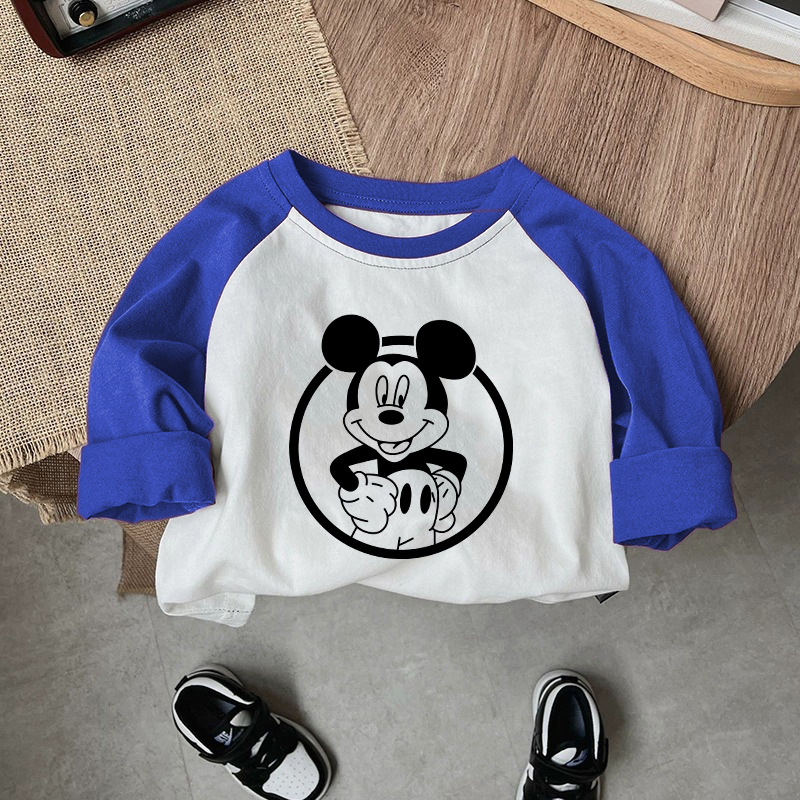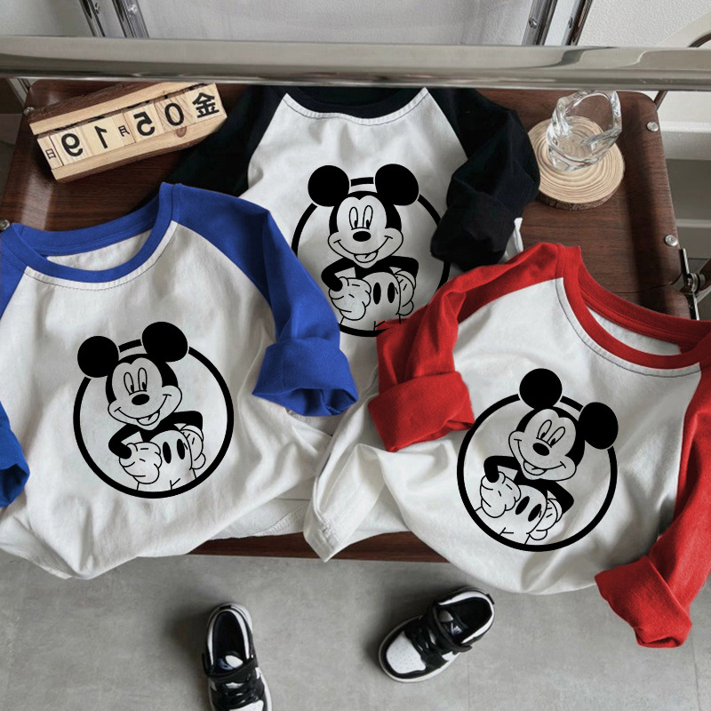 면 어린이 티셔츠 긴팔 남성과 여성의 아동복 2023 귀여운 만화 애니메이션 미키 어린이 바닥 탑 봄스토어 가기