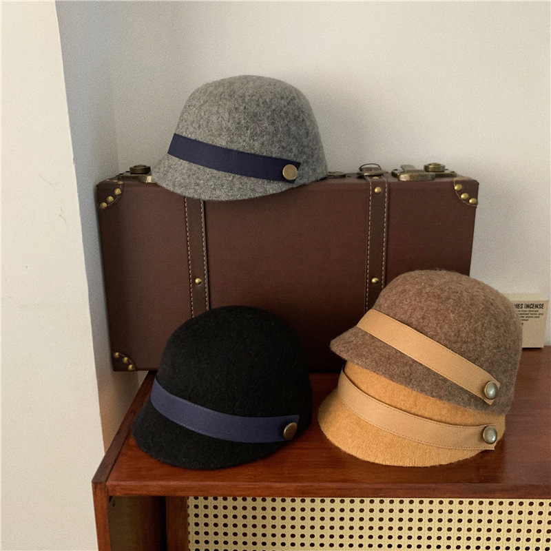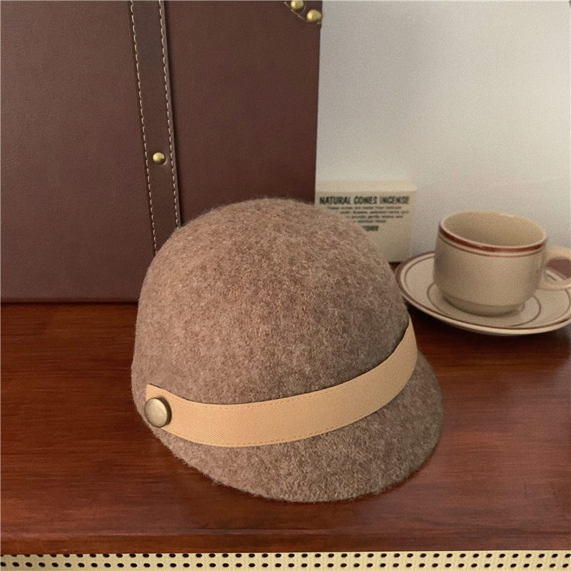 영국 스타일 어린이 가을 세련된 승마 모자 울 혼합 아기 패션 복고풍 착용 짧은 챙 모자