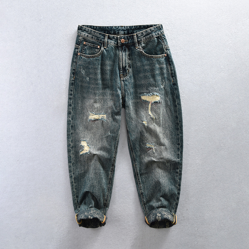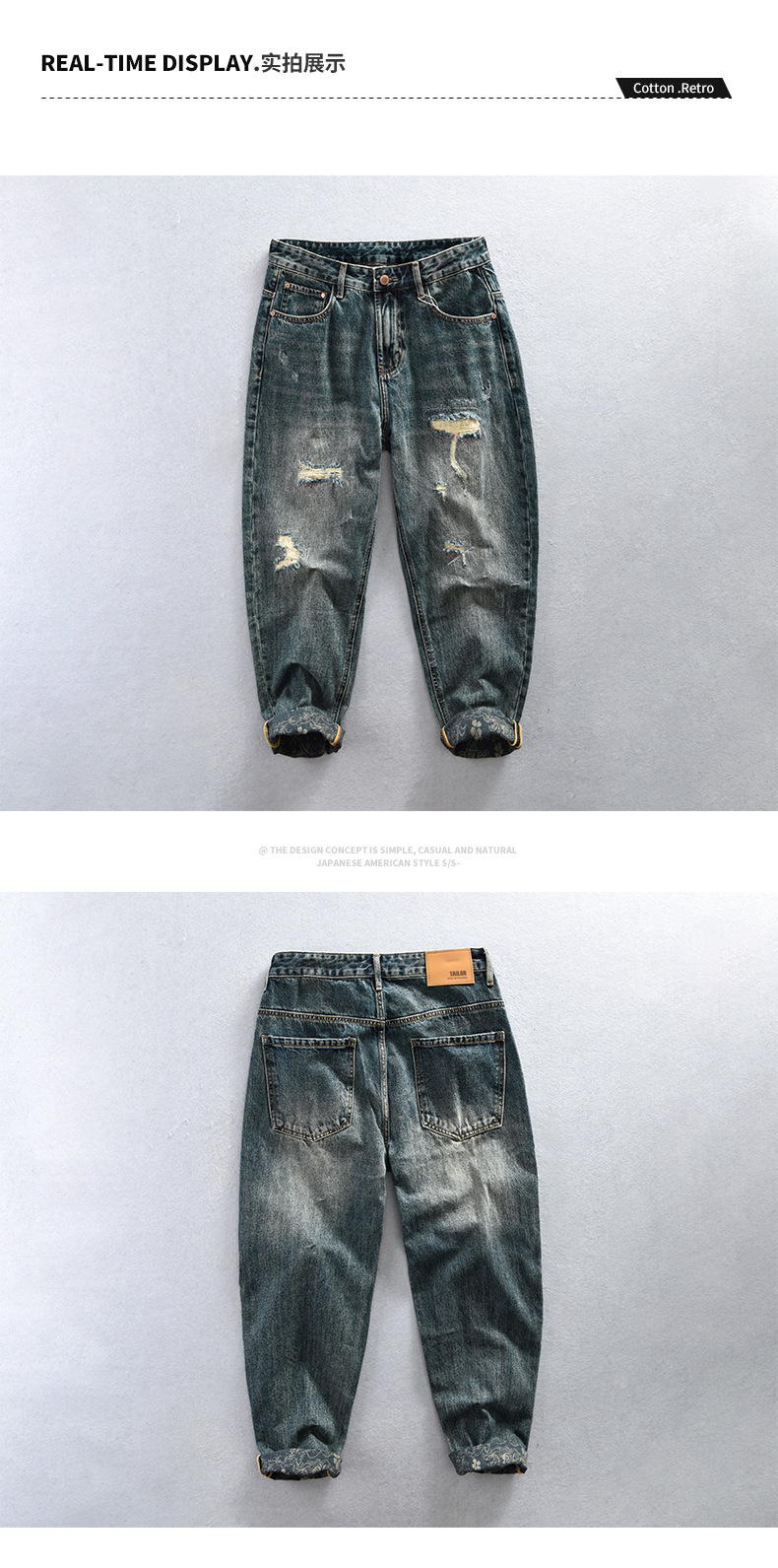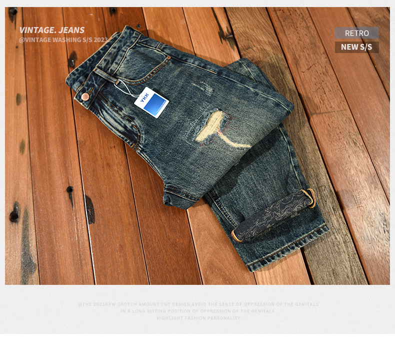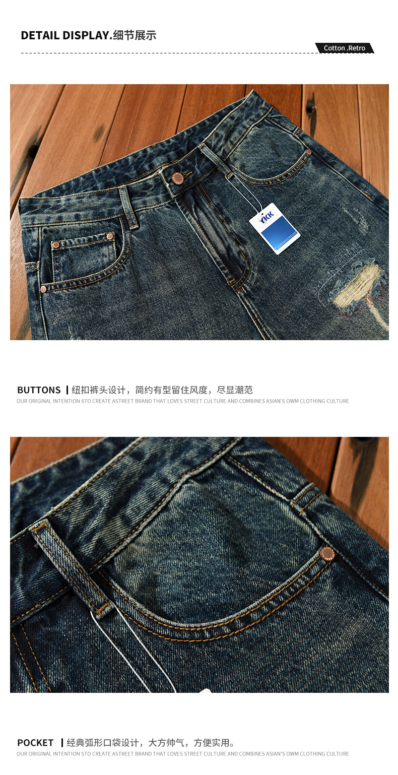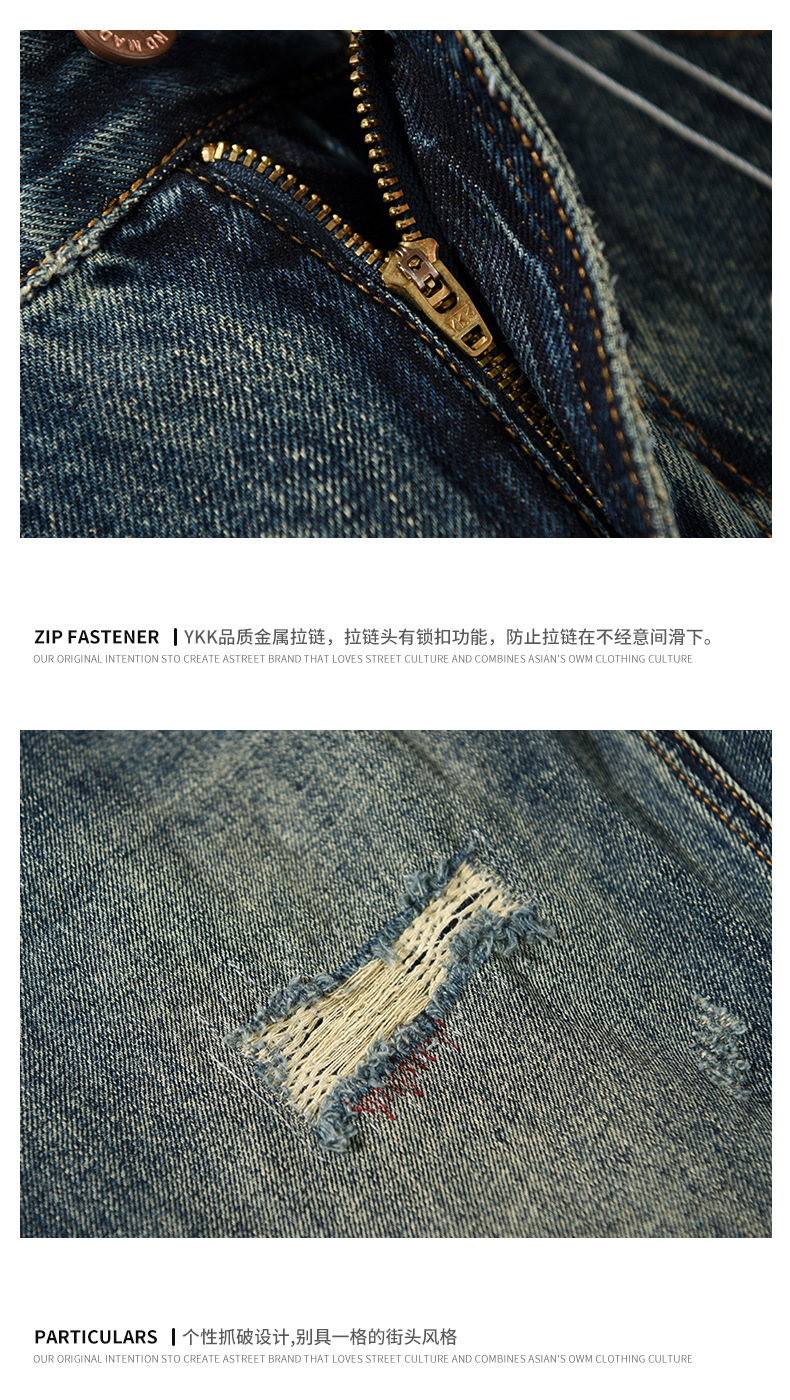 봄 남자의 구멍 복고풍 워시 캐주얼 청바지 한 세대의 머리카락 Z1030스토어 가기