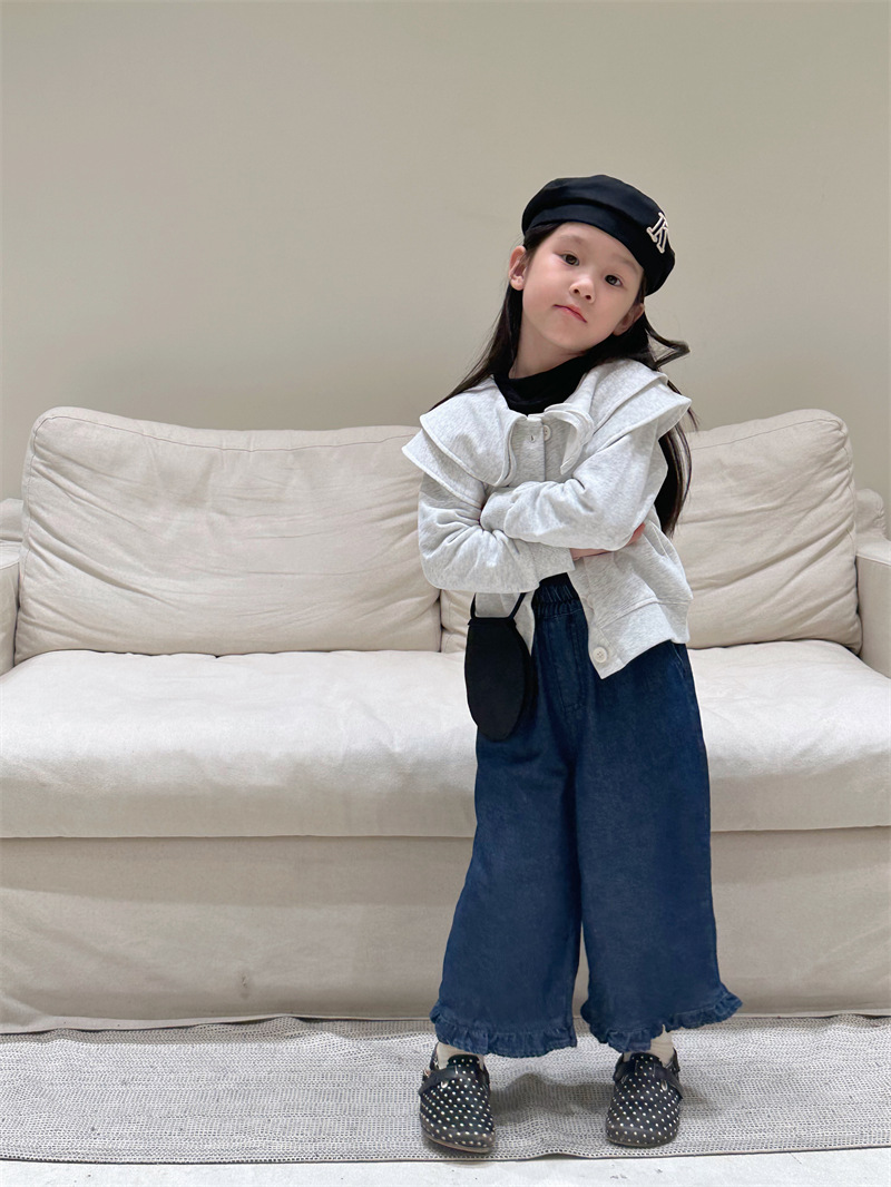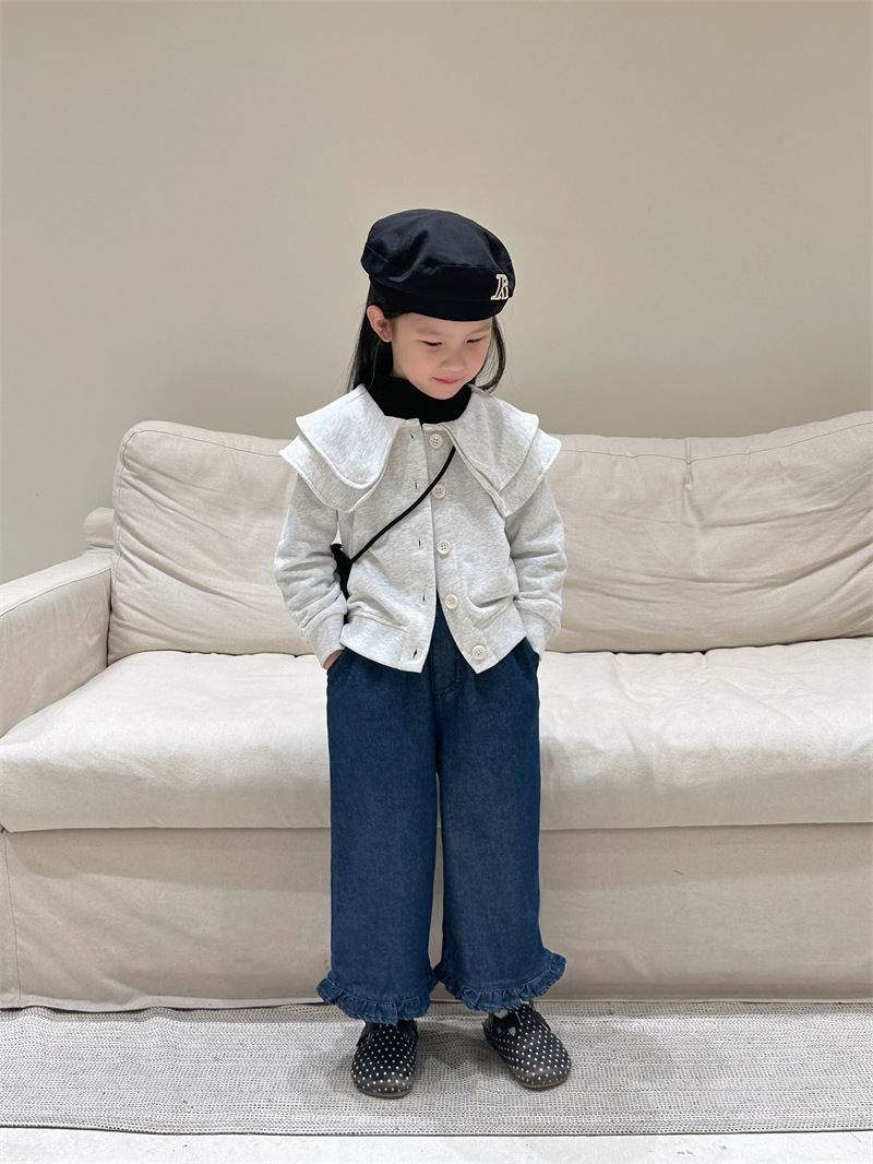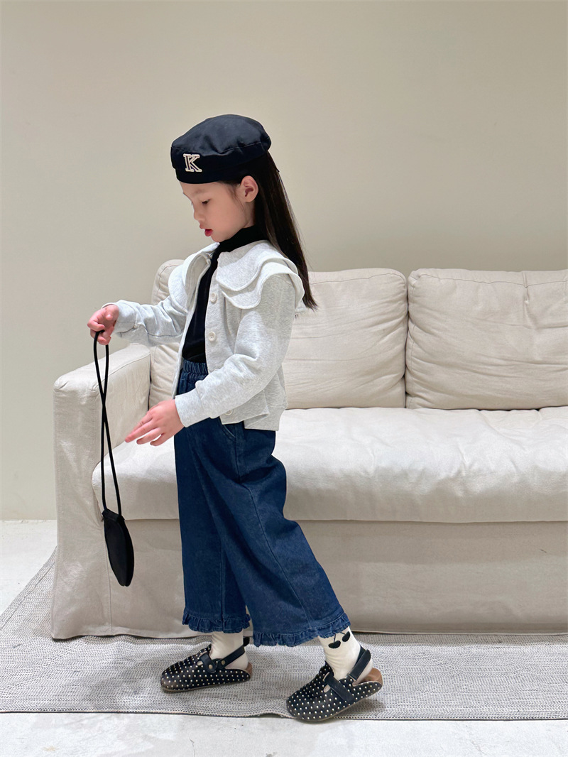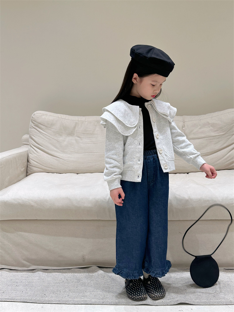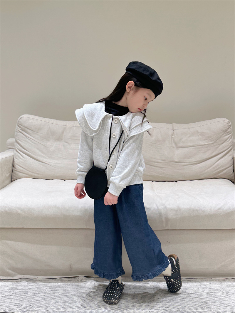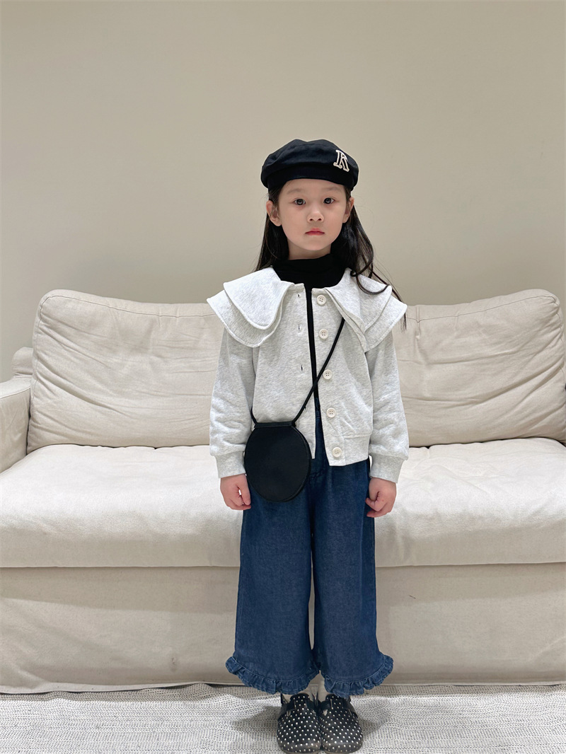 아동복 여자 더블 대형 옷깃 서양식 아기 2023 새로운 봄과 가을 어린이 카디건 코트 A442
