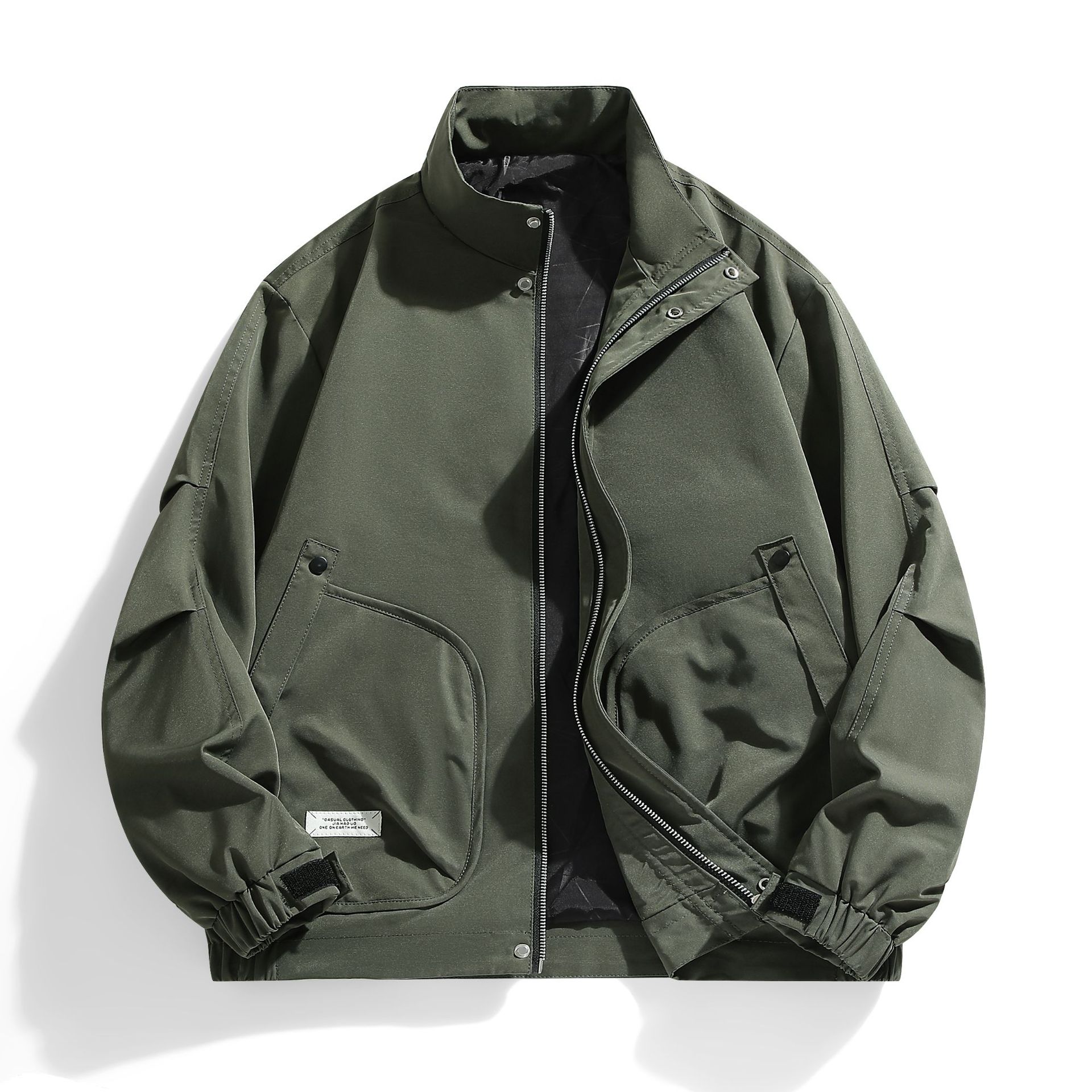 2025 신상 남성 스탠드 칼라 솔리드 컬러 재킷 홍콩 스타일 캐주얼 빅사이즈 얇은 재킷 멋진 밀리터리 스타일 남성용 상의