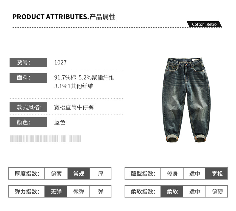 1027 남자 워싱 캐주얼 데님 바지 물 세대스토어 가기