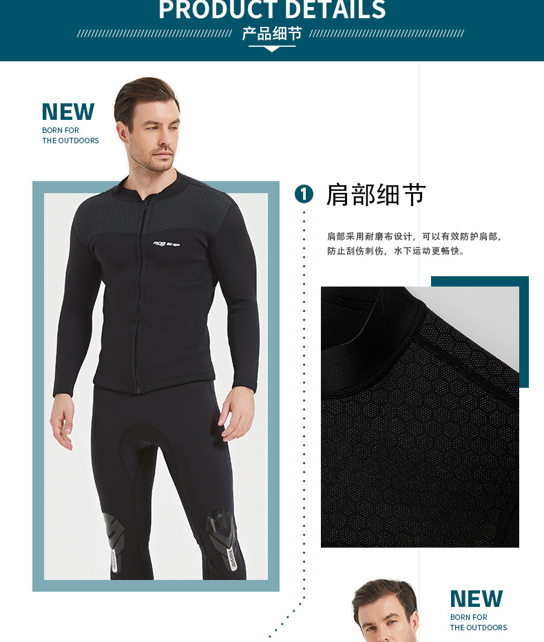 3mm 다이빙 세트 탑 내마모성 숄더 논슬립 백 스플릿 웜 다이빙 세트 블랙 남성 및 여성 다이빙 방한스토어 가기