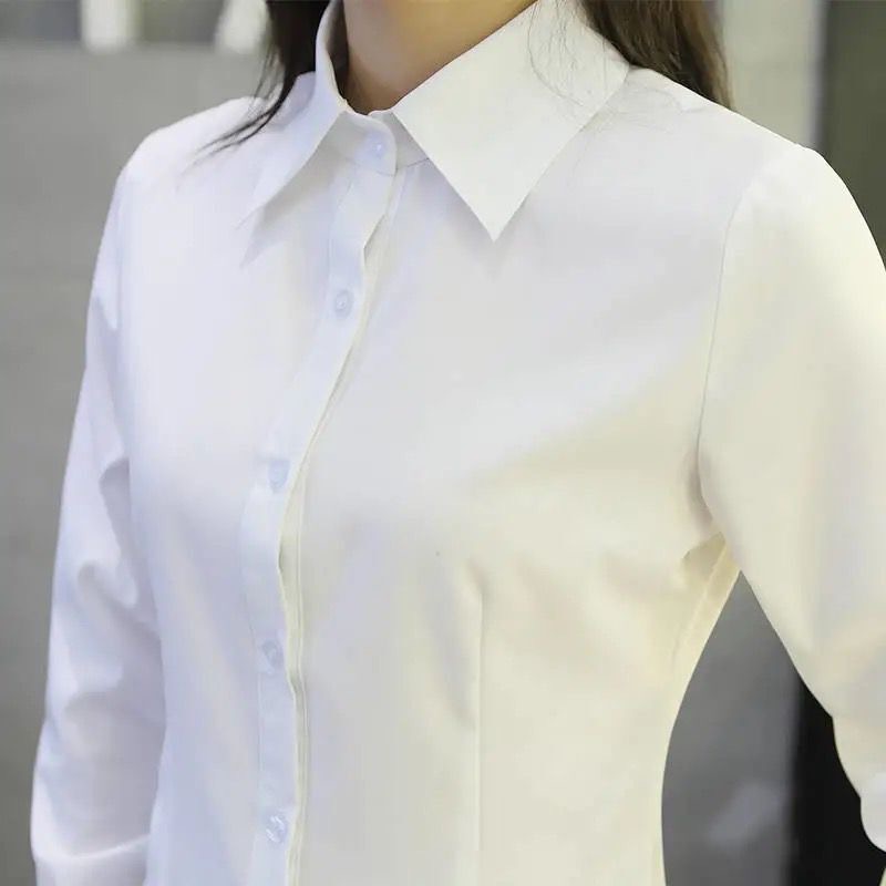 여성용 두꺼운 화이트 셔츠, 전문직 정장, 다용도 이너웨어, 화이트 셔츠, 여성스러운 분위기, 직장복 상의, 노출 방지스토어 가기