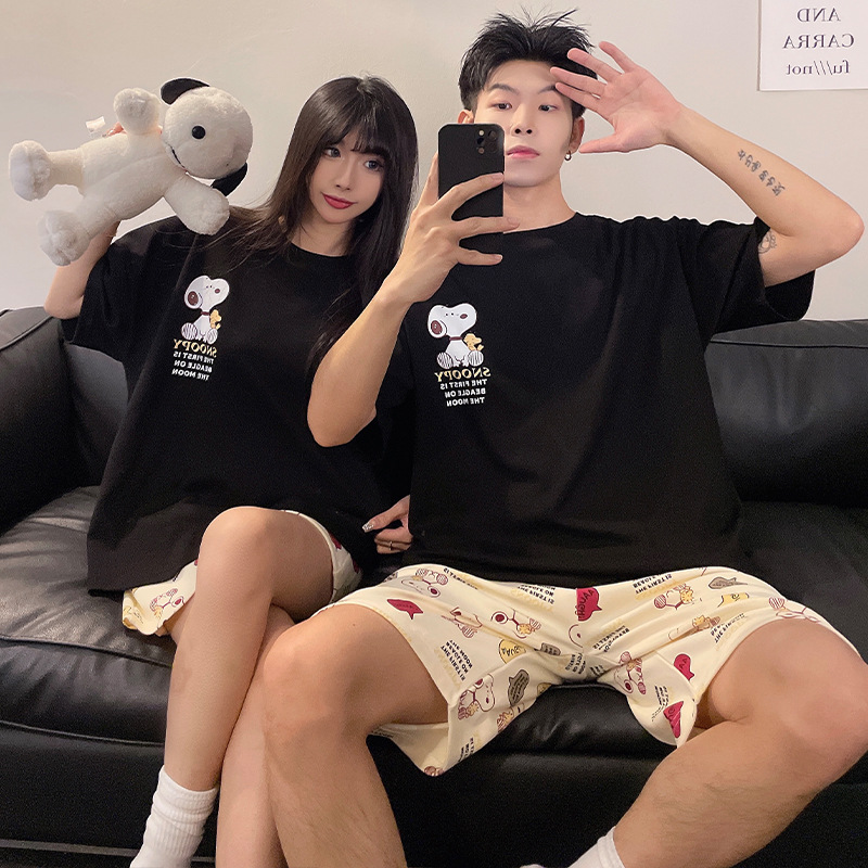 여름 커플 파자마 반팔 여성 아웃웨어 봄 · 여름 홈 세트 남자 새 모조 면 새 한국 스타일스토어 가기