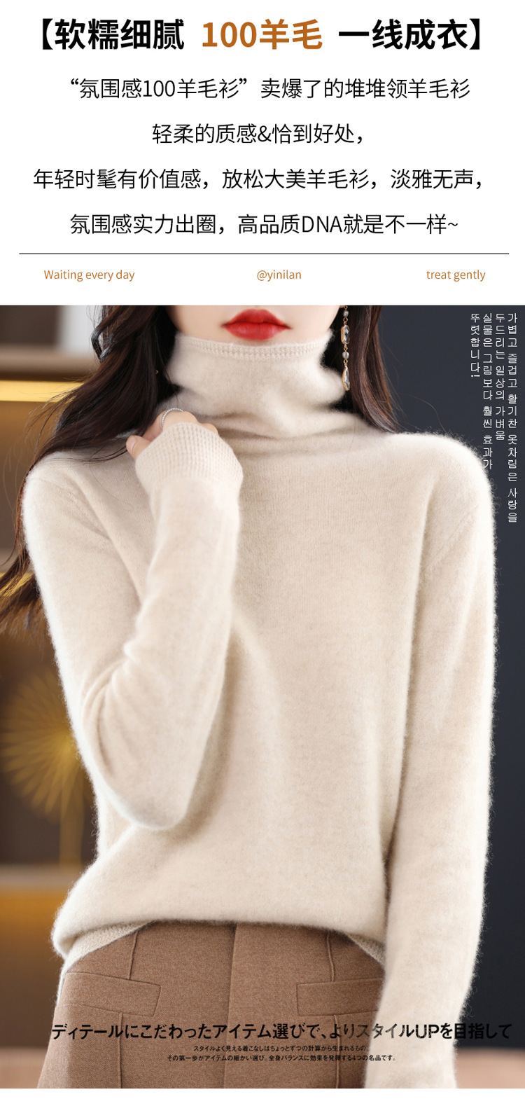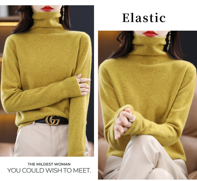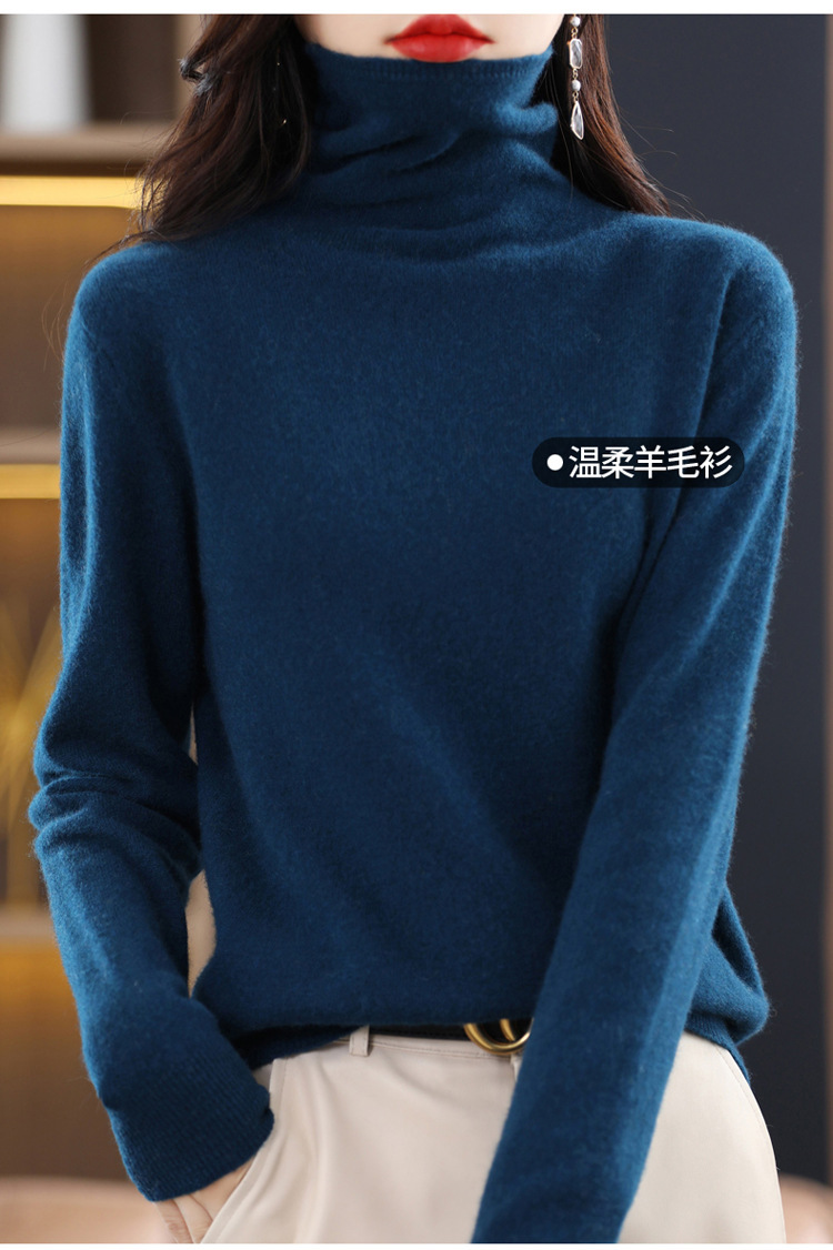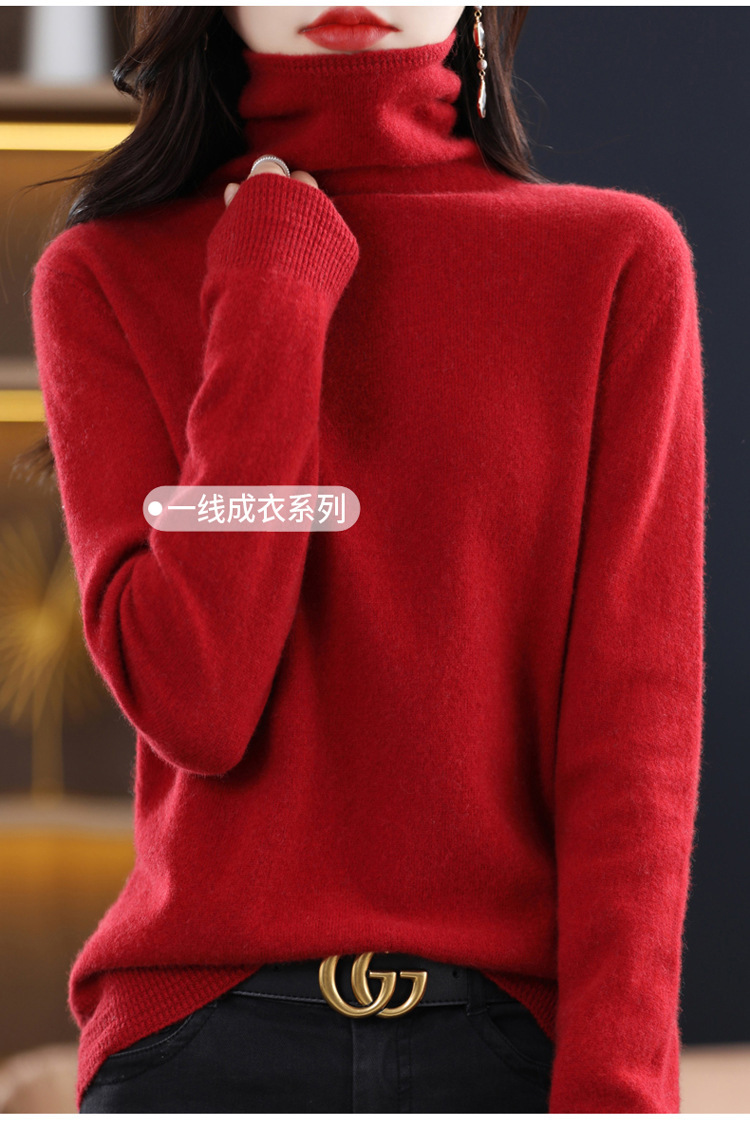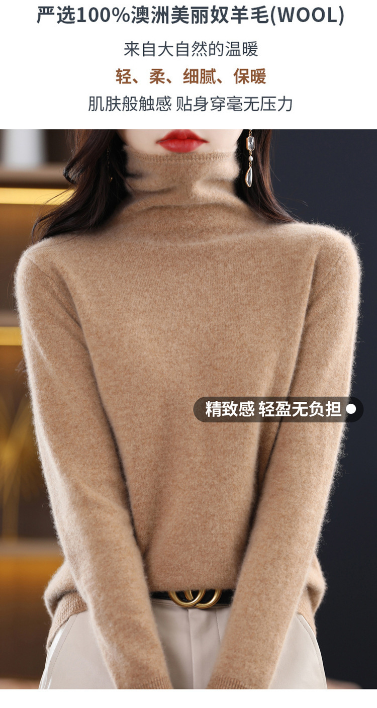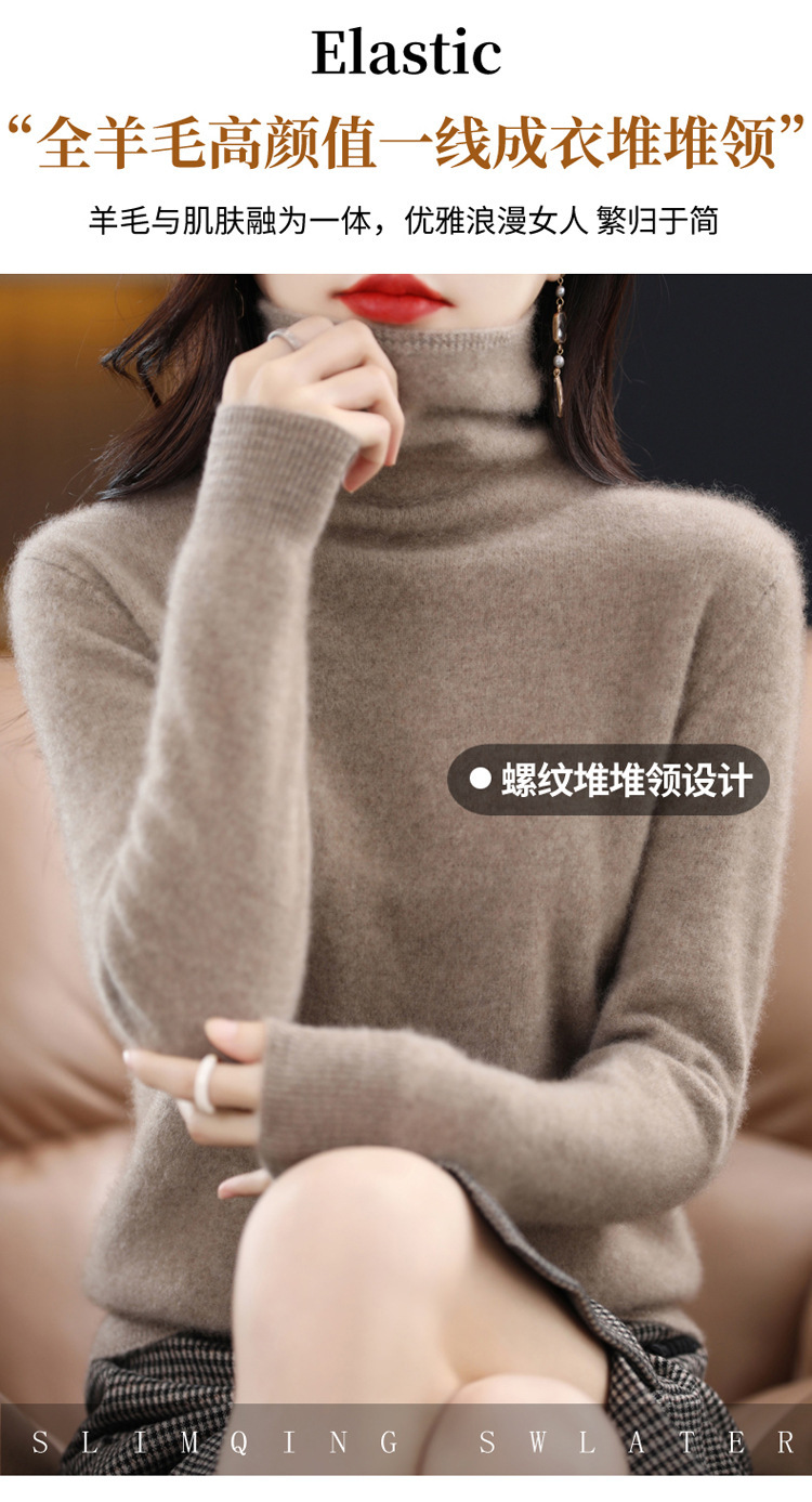 一线成衣100%纯羊毛2023秋冬新款女堆领保暖打底衫短款针织衫毛衣
