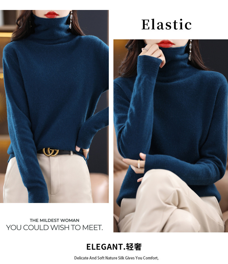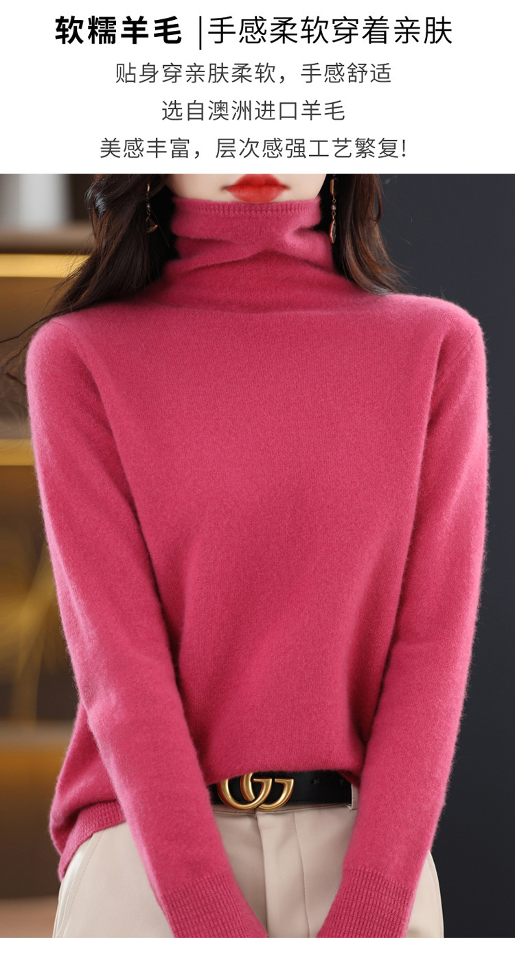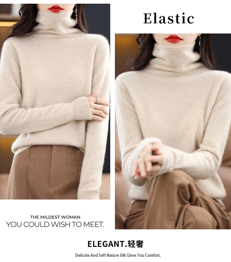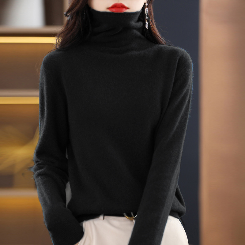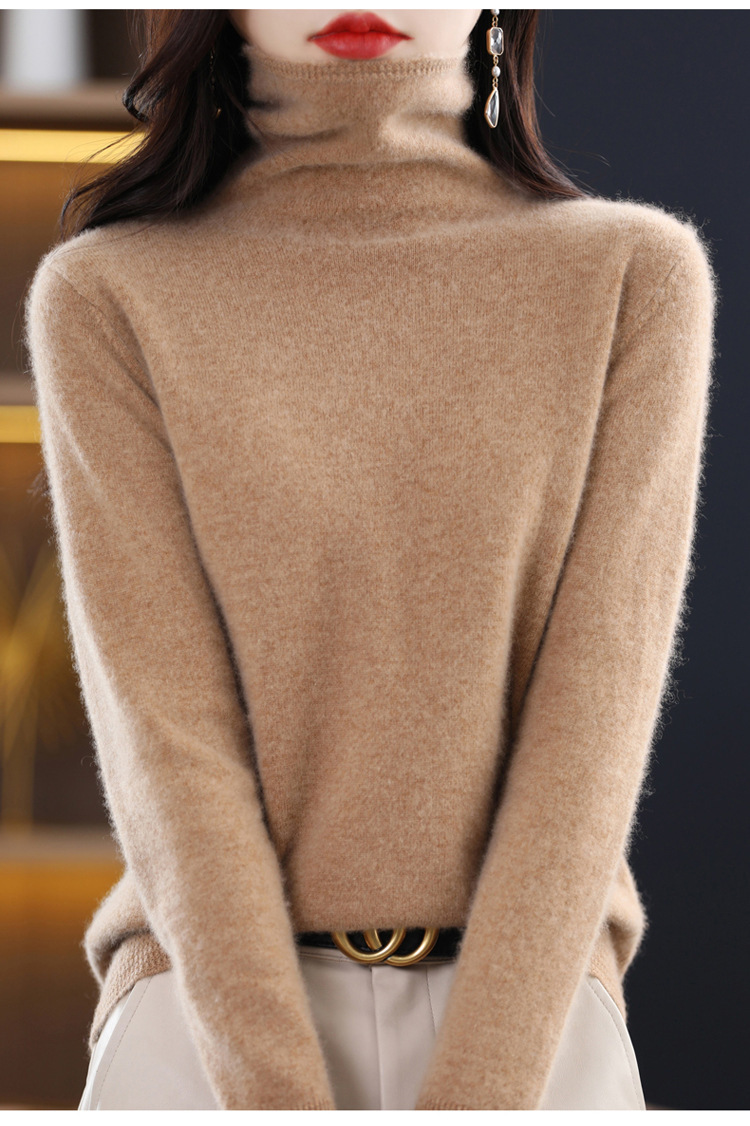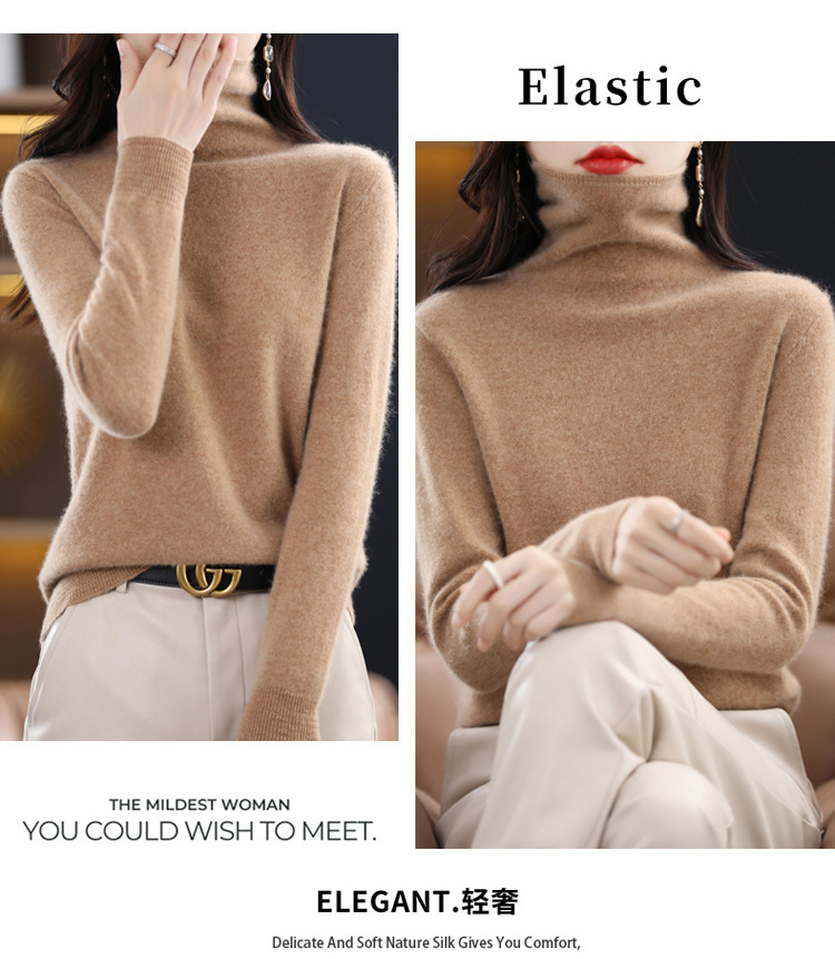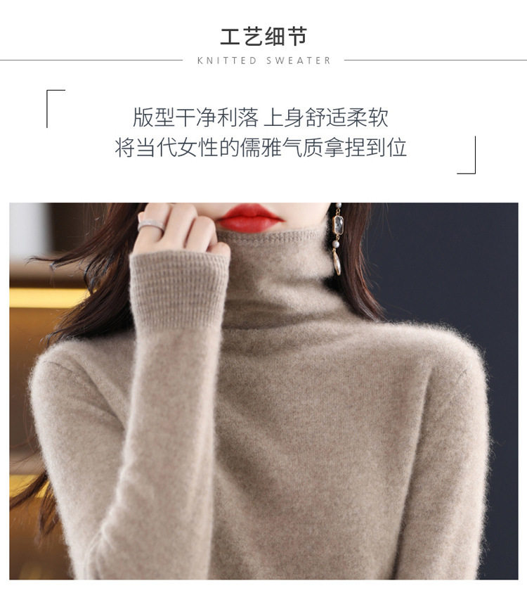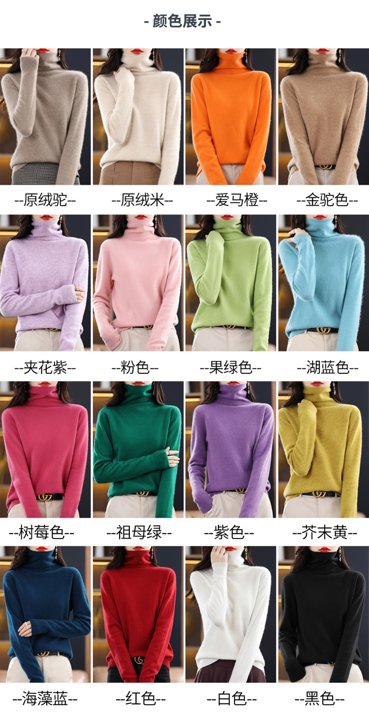 一线成衣100%纯羊毛2023秋冬新款女堆领保暖打底衫短款针织衫毛衣