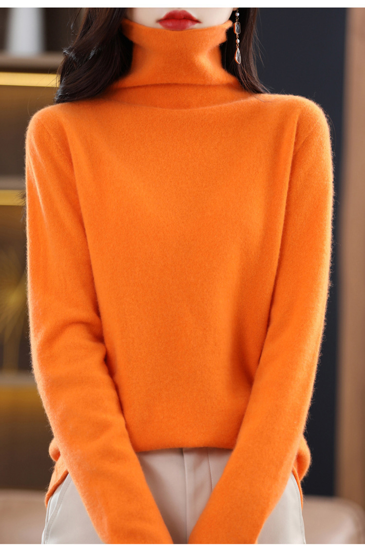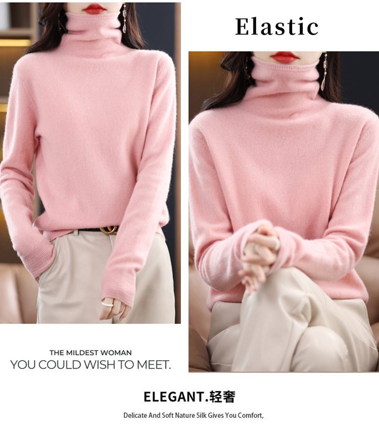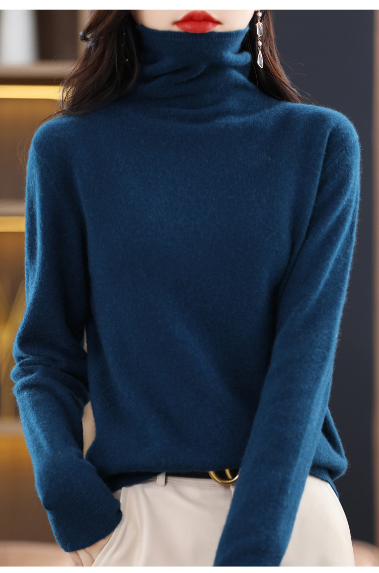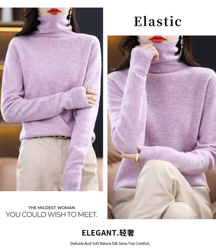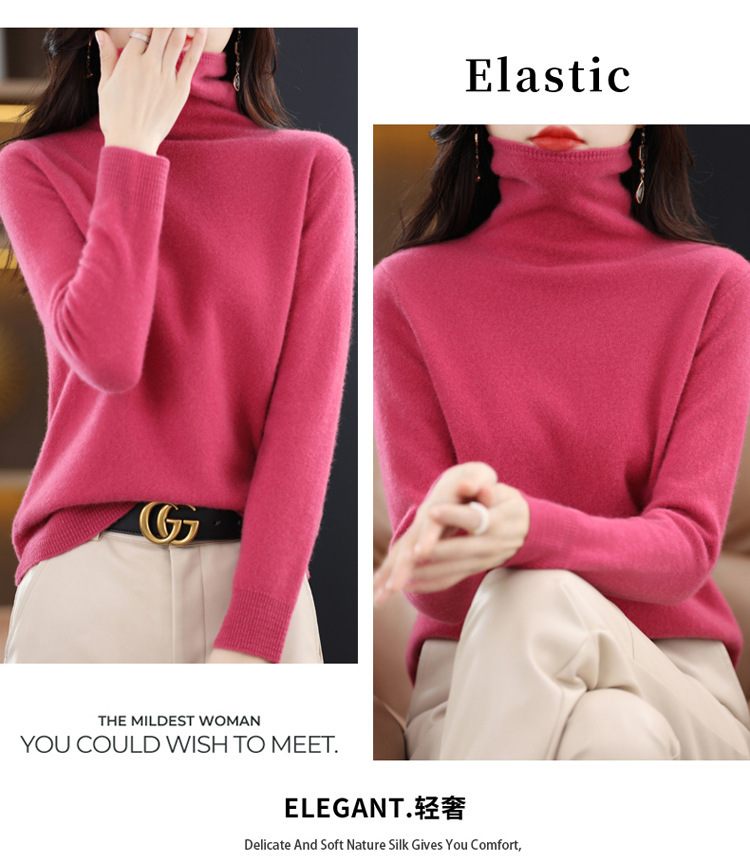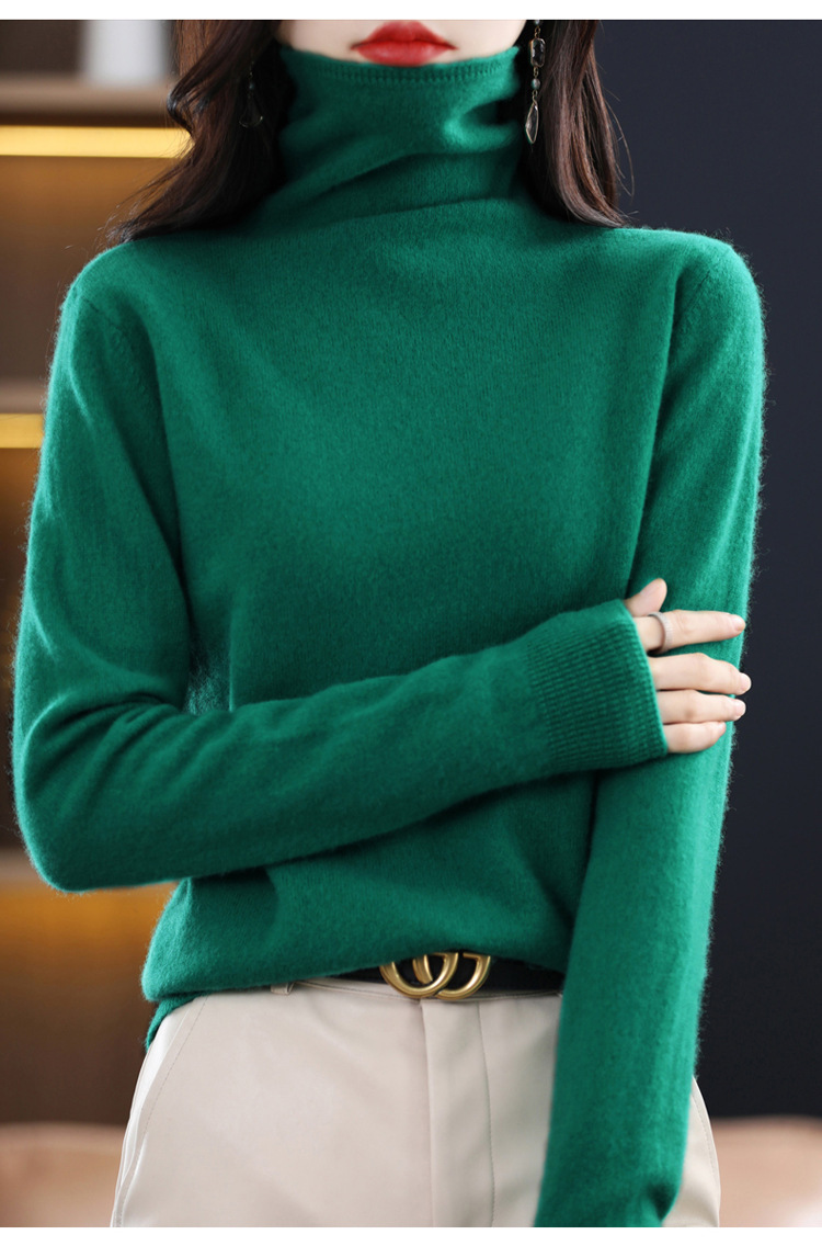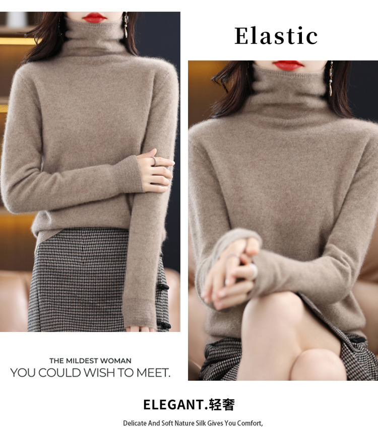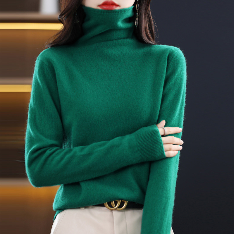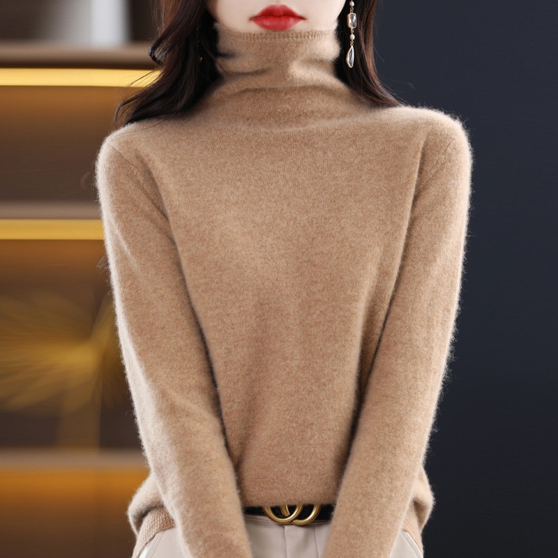 一线成衣100%纯羊毛2023秋冬新款女堆领保暖打底衫短款针织衫毛衣
