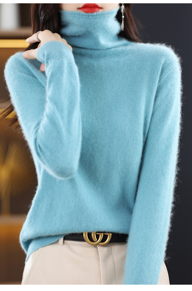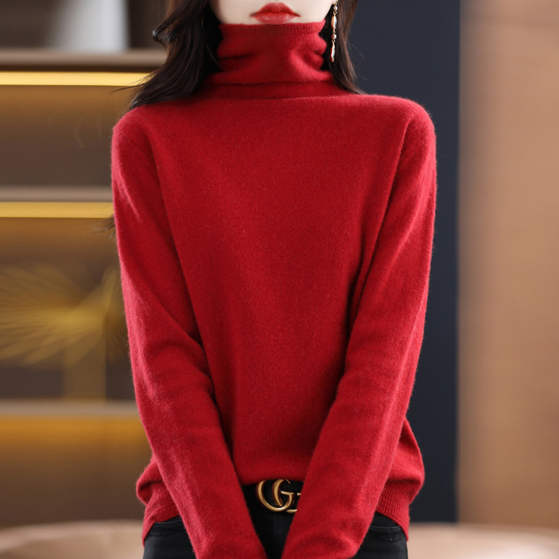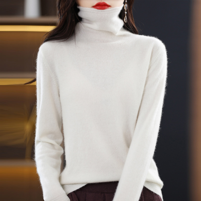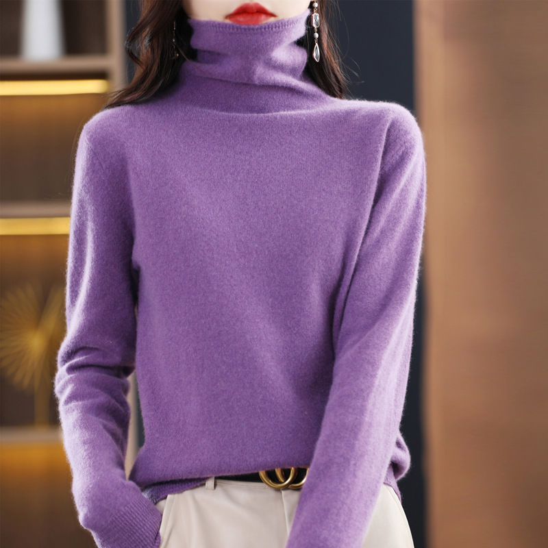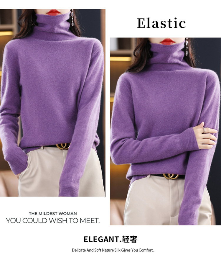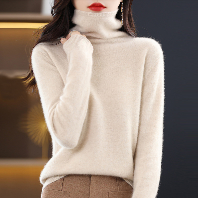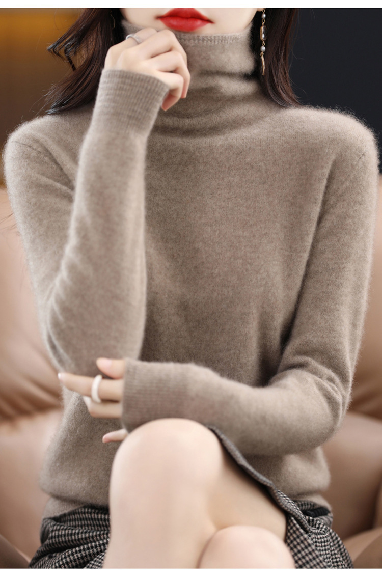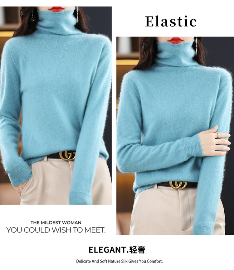 一线成衣100%纯羊毛2023秋冬新款女堆领保暖打底衫短款针织衫毛衣