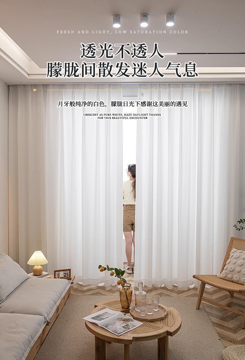 팬텀 쉐이드 2025 신형 커튼 쉐이드, 빛은 투과하지만 사람을 보이지 않게 하는 거실 발코니 창문 쉐이드, 화이트 쉐이드 완제품, 창턱용