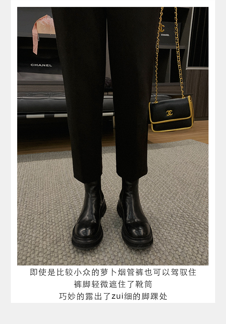 재고 포도 엄마 수축 말 가죽 신발 씻어 두꺼운 밑창 중간 튜브 연기 튜브 첼시 앵클 부츠 여성의 가을스토어 가기