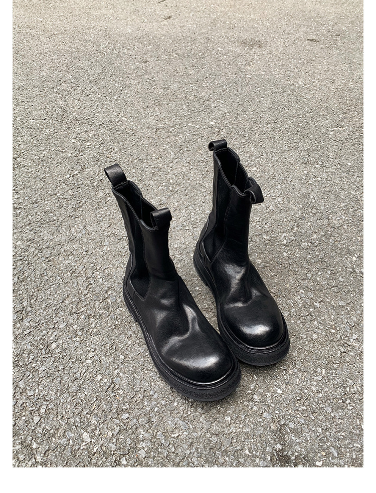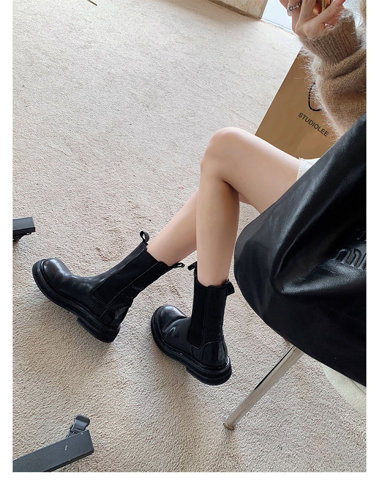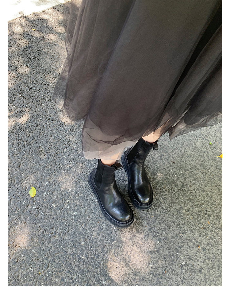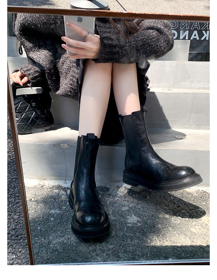 재고 포도 엄마 수축 말 가죽 신발 씻어 두꺼운 밑창 중간 튜브 연기 튜브 첼시 앵클 부츠 여성의 가을