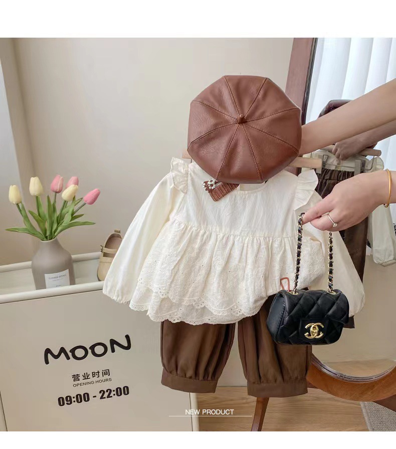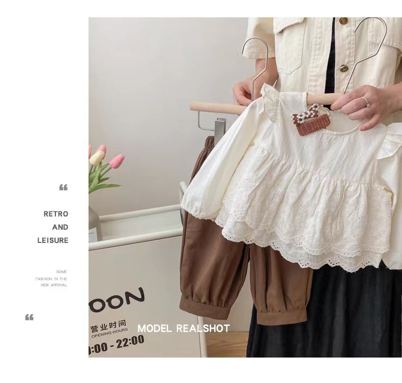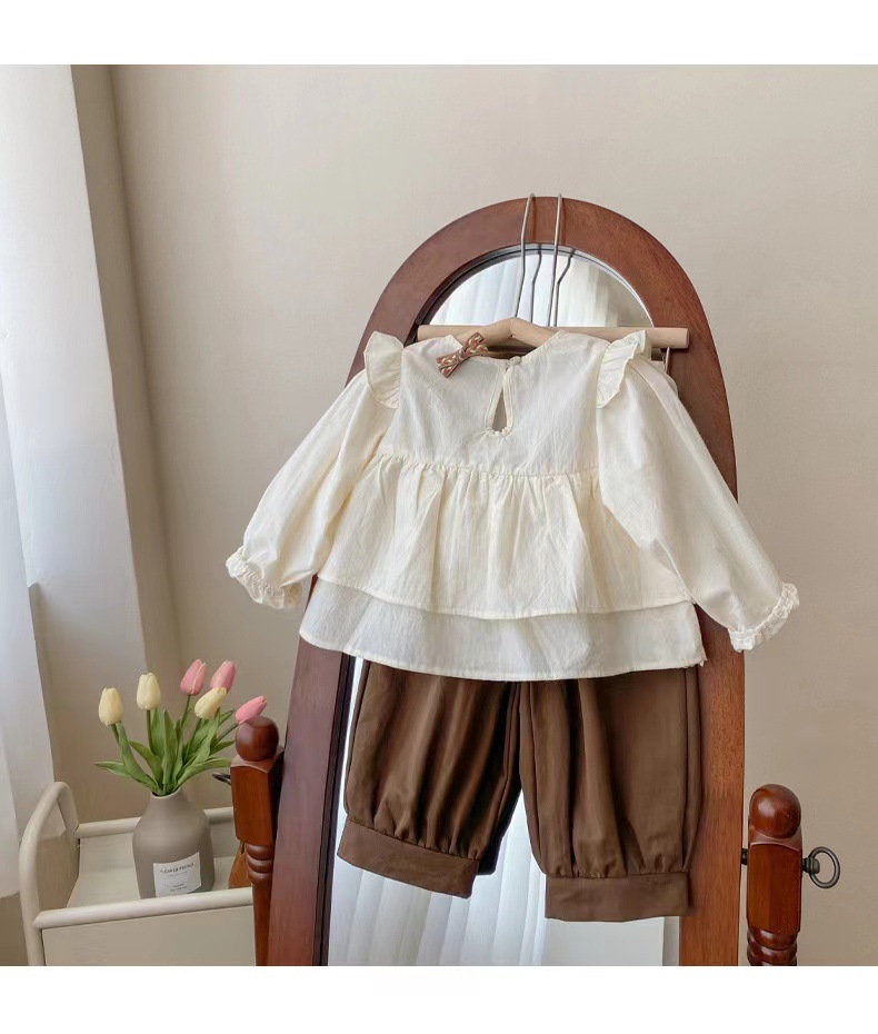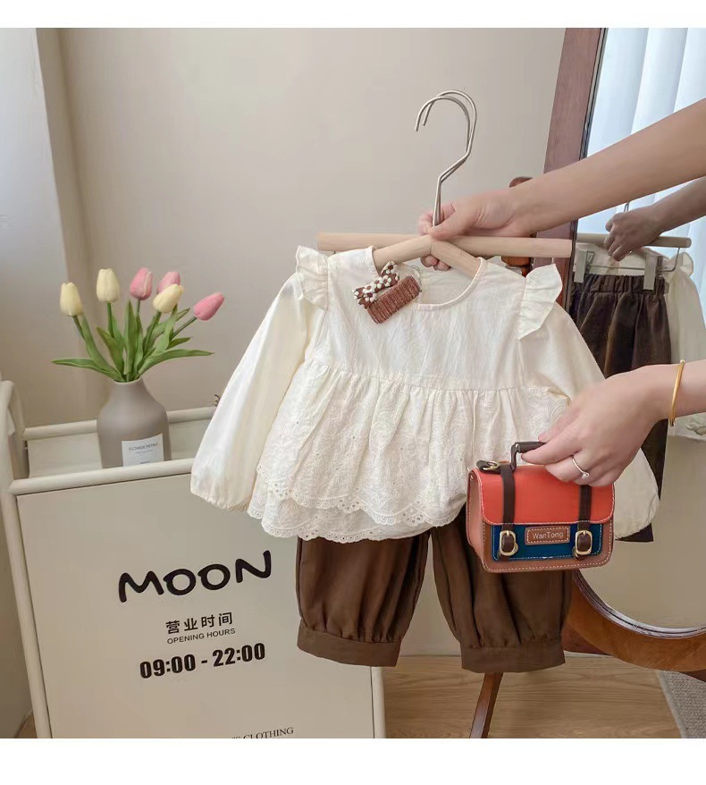 女童秋款套装2023新款洋气宝宝花边衬衫两件套儿童春秋季时髦衣服
