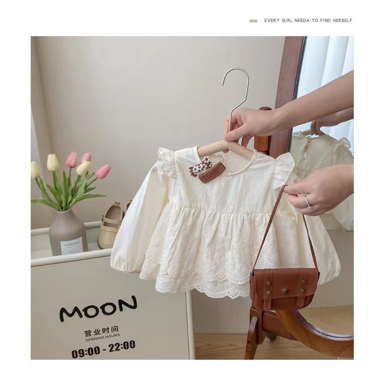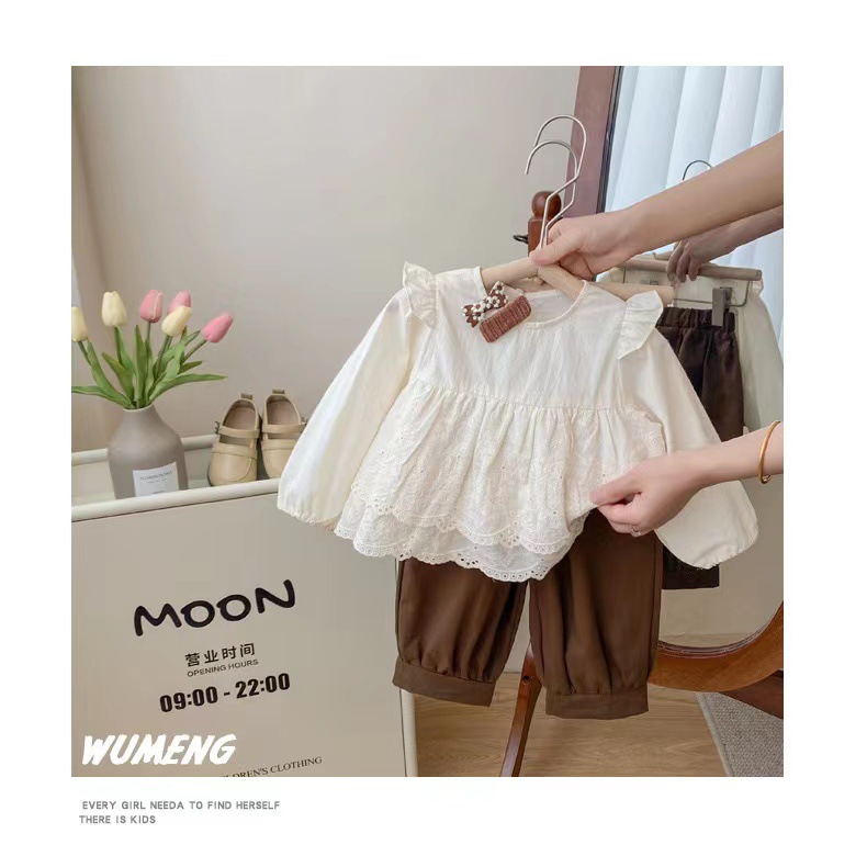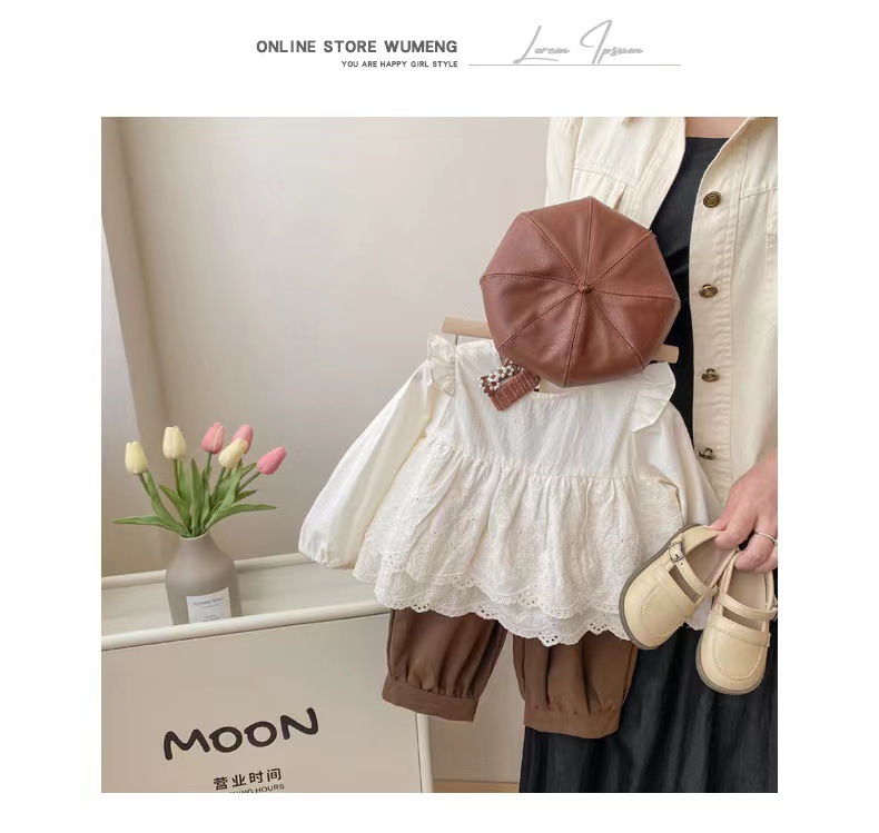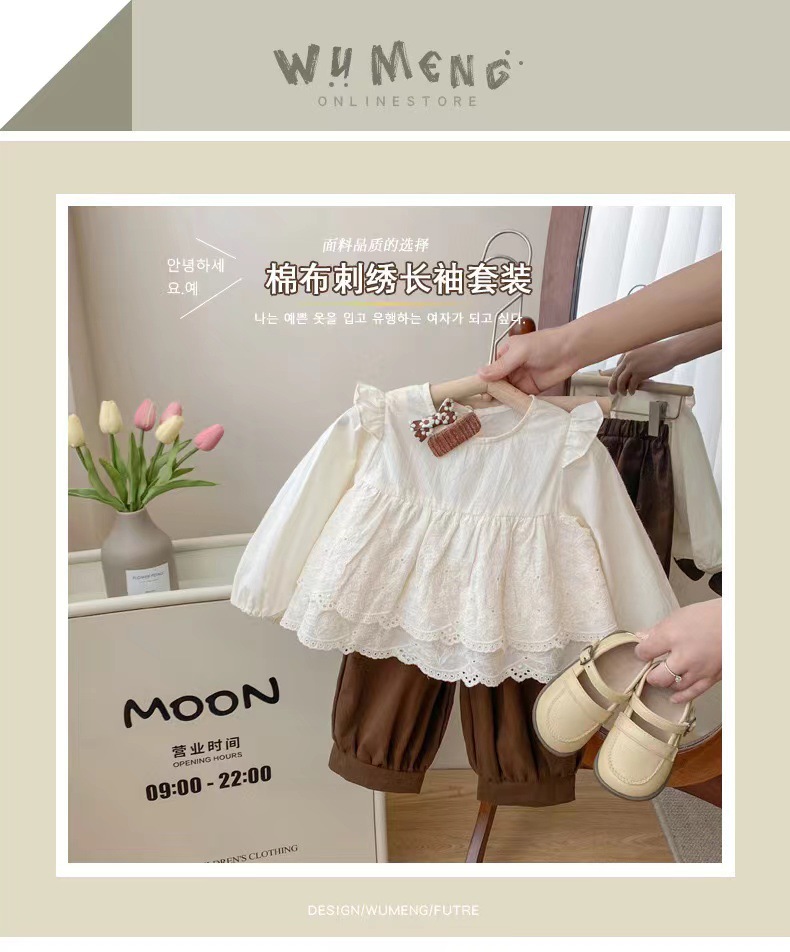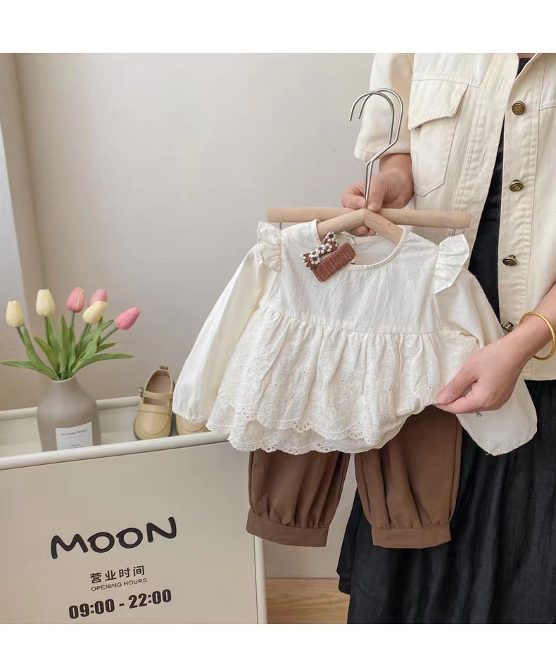 여아 가을 정장 2025 새로운 스타일의 베이비 레이스 셔츠 투피스 세트 아동 봄, 가을 유행 의류스토어 가기