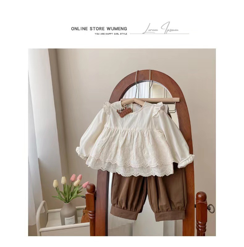 여아 가을 정장 2025 새로운 스타일의 베이비 레이스 셔츠 투피스 세트 아동 봄, 가을 유행 의류