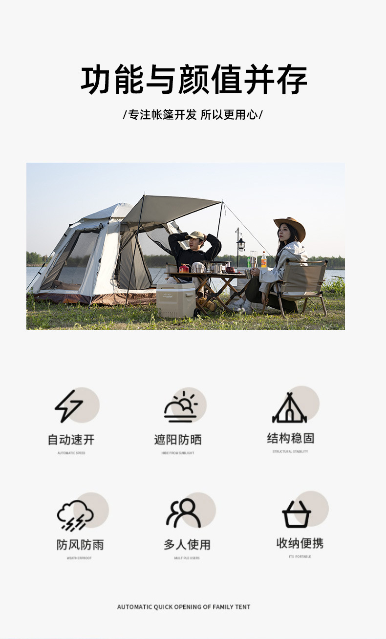 휴대용 퀵 오픈 하이킹 텐트 야외 텐트 캠핑 자동 텐트 5-8 명 공원 텐트 캠핑 풀 세트