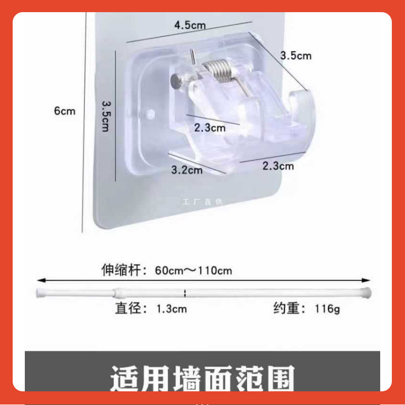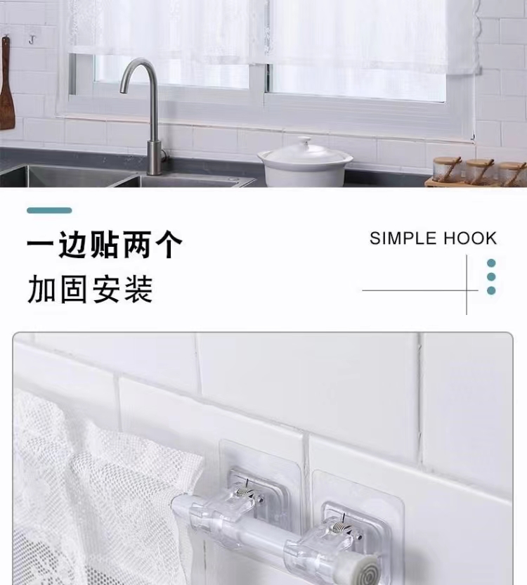 B6J1 텔레스코픽 로드 브래킷 캐비닛 펀치 프리 고정 클립 후크 도어 커튼로드 브래킷 접착 브래킷 커튼로드스토어 가기