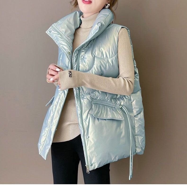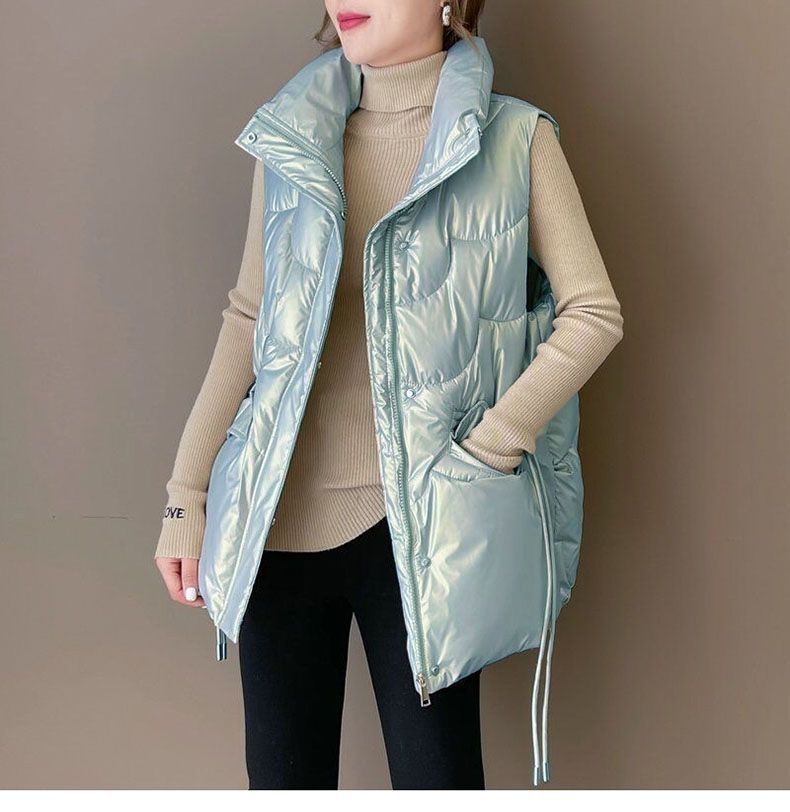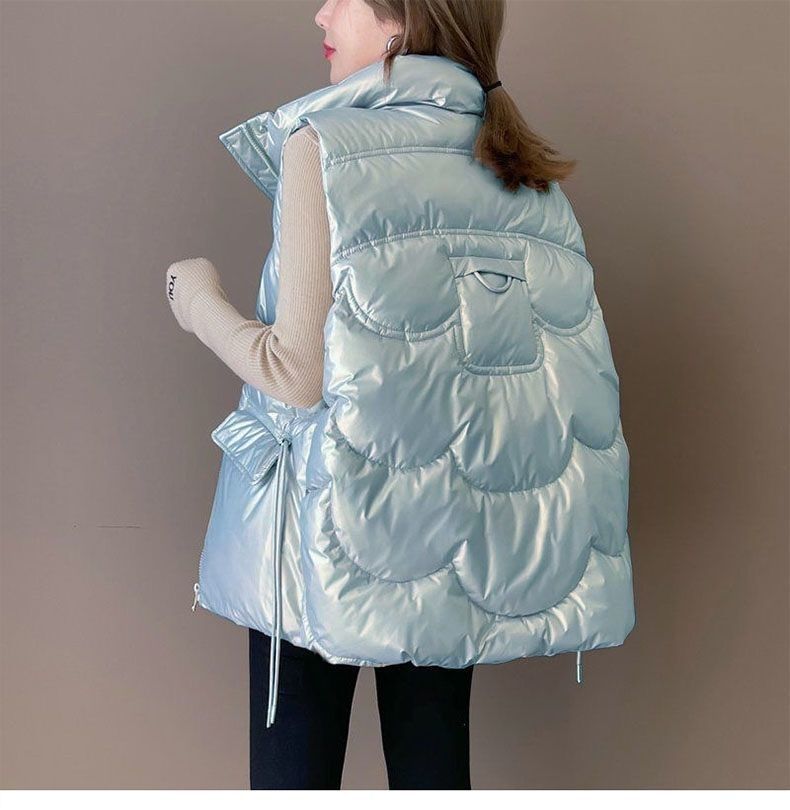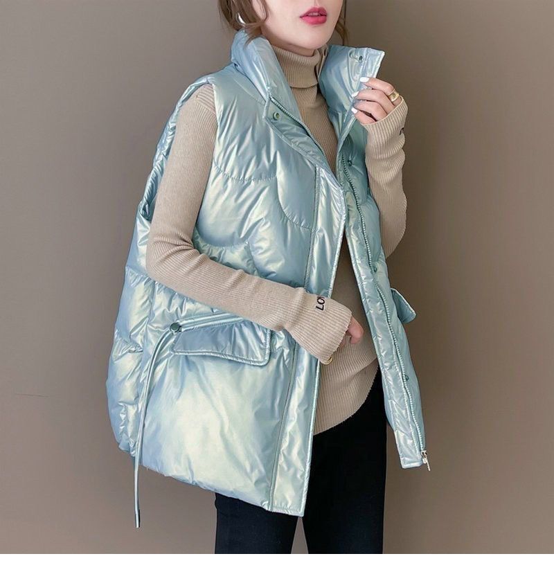워시 프리 조끼 2023 뉴 다운 코튼 패딩 재킷 여성의 느슨한 플러스 사이즈 단색 짧은 칼라 통근 재킷스토어 가기