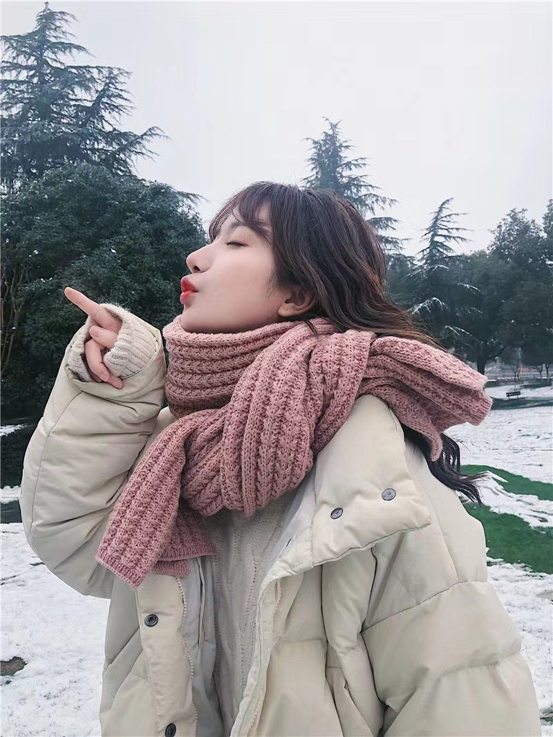 스카프 여성의 가을과 겨울 한국 단색 양모 따뜻한 학생 귀여운 커플 인터넷 연예인 스카프 남자 올 매치 스타일스토어 가기