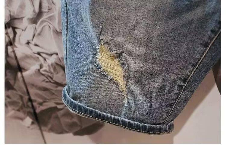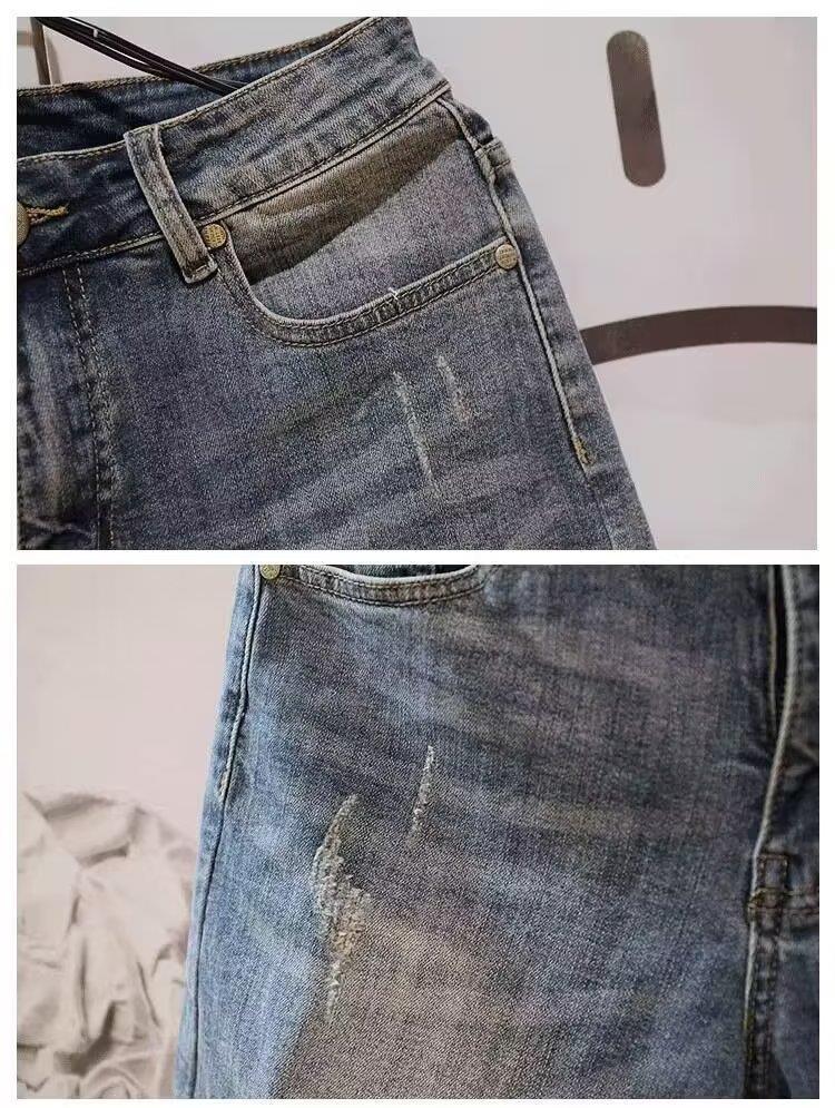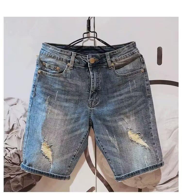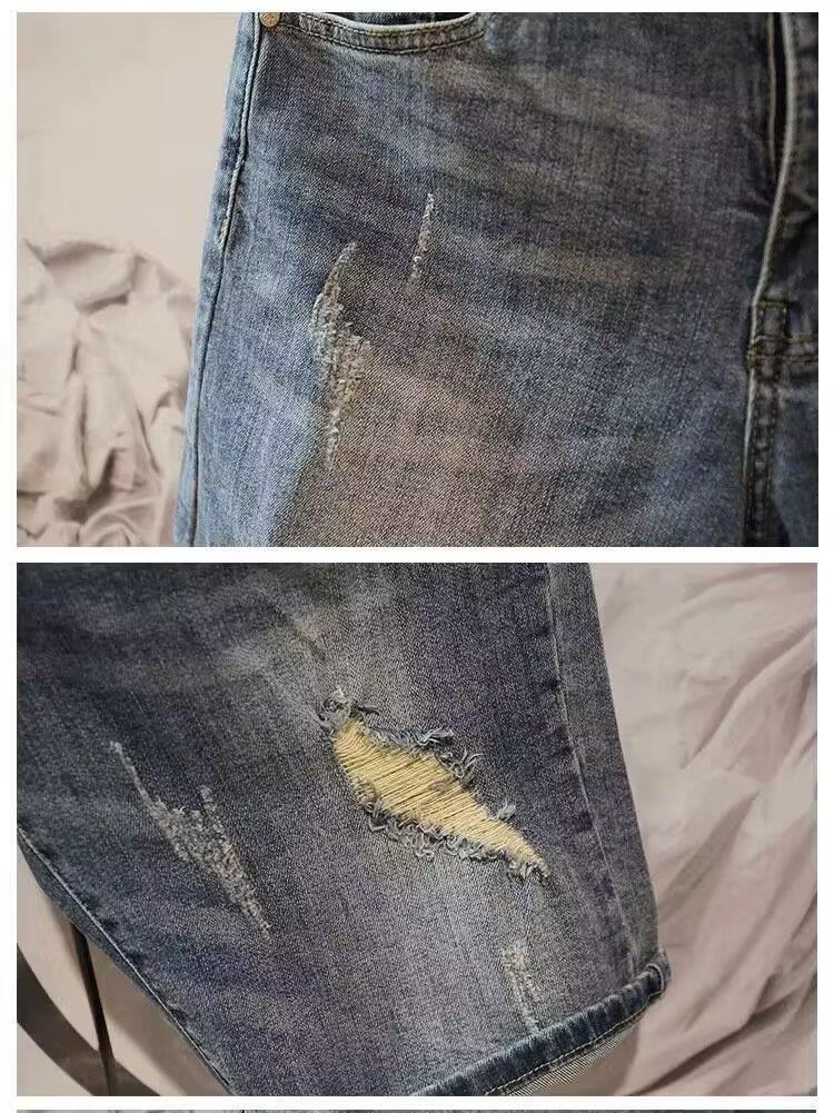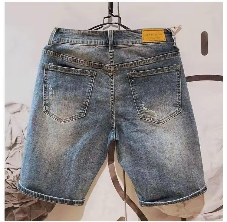 빈티지 오래 된 찢어진 데님 반바지 남자의 트렌디 브랜드 느슨한 스트레이트 반 길이 바지 남자의 여름 얇은 중간 길이 바지스토어 가기