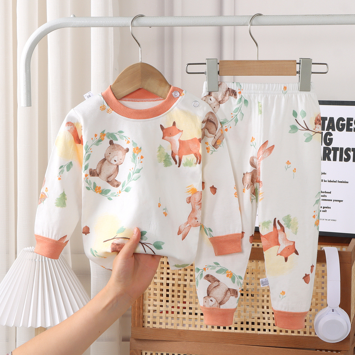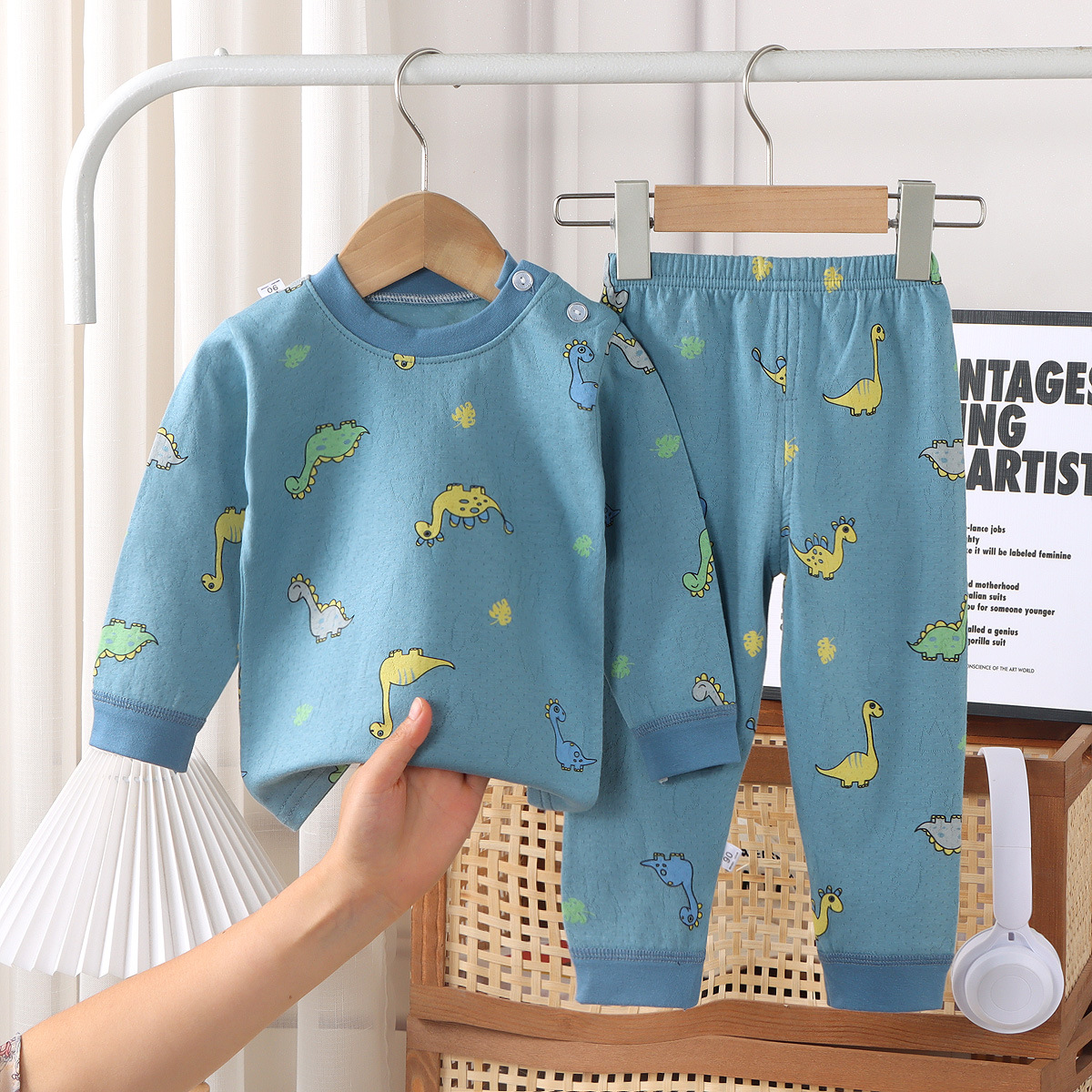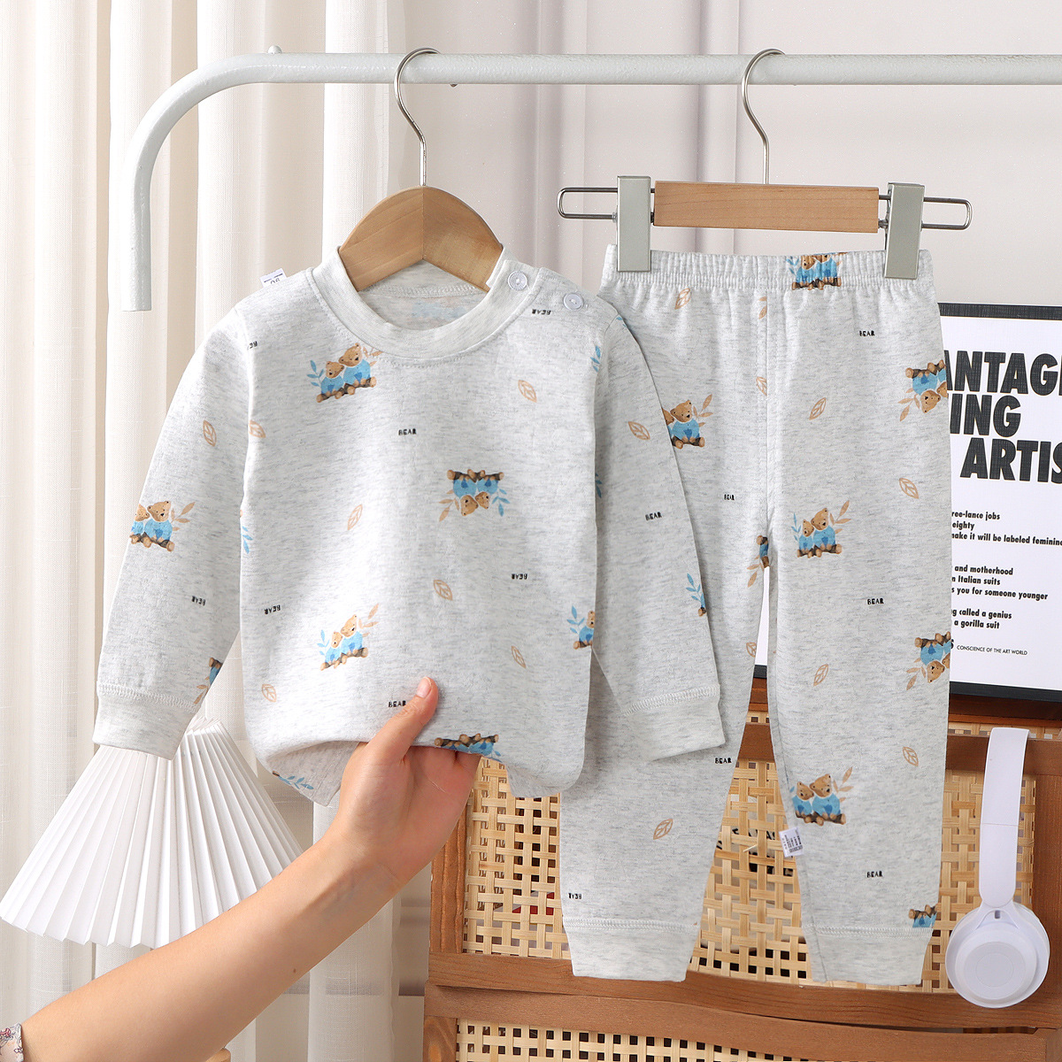 남아 및 여아 순면 가을 옷 및 긴 바지 세트, 아동 및 유아 가을 겨울 잠옷, 가정복, 아동용 A급 순면 속옷