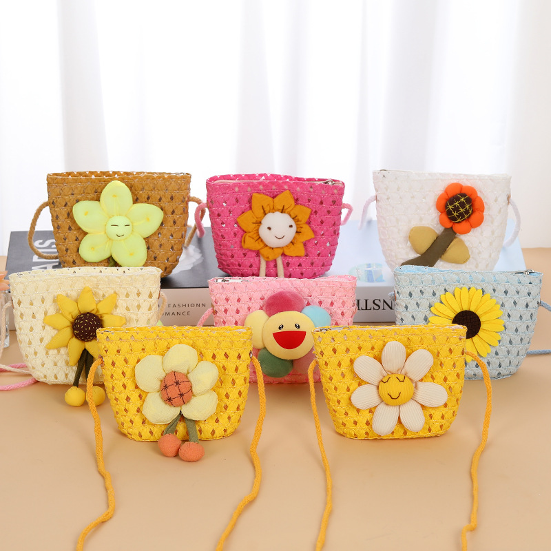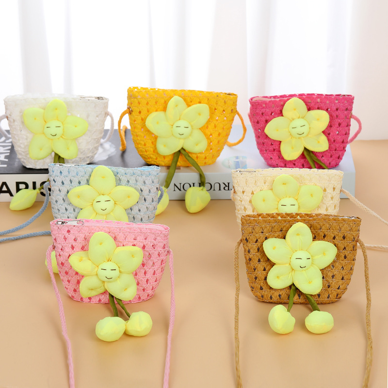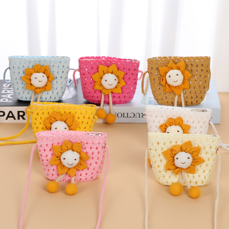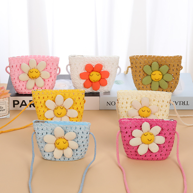 어린이 가방 여자아이 귀여운 2025년 신상 해변용 속이 빈 밀짚 가방 어린 소녀 크로스바디 미니 동전 지갑스토어 가기