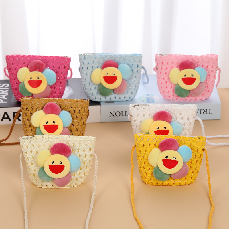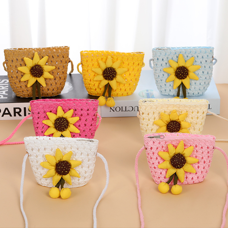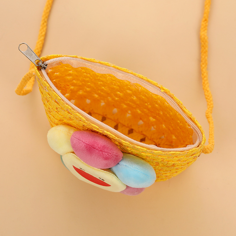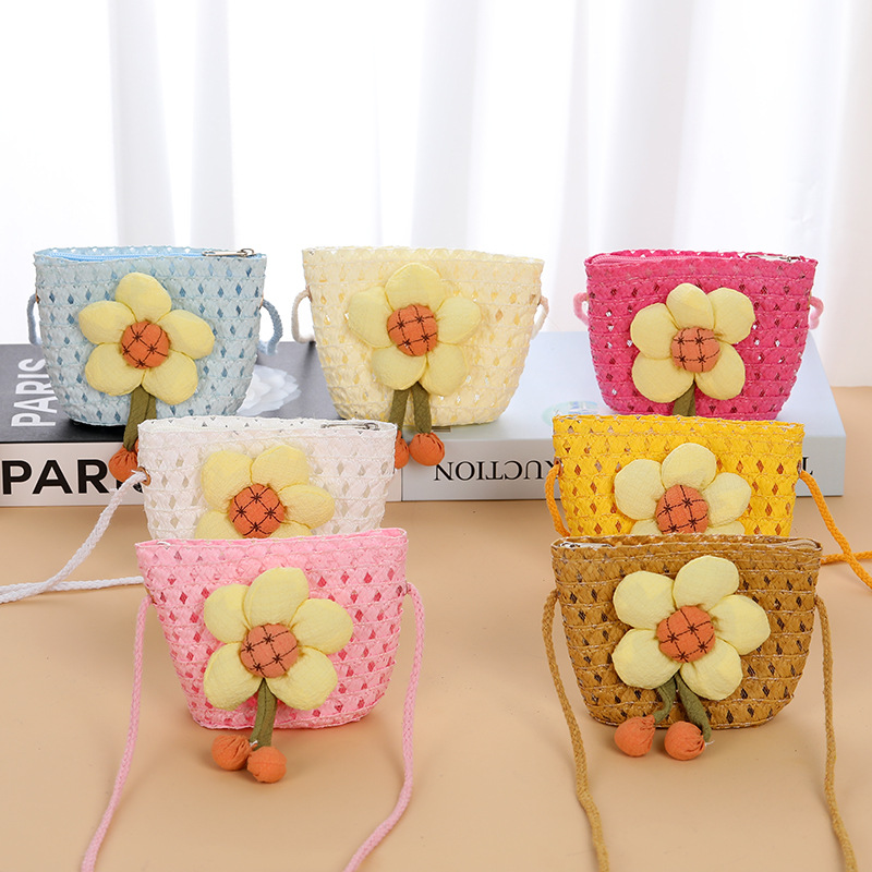 어린이 가방 여자아이 귀여운 2025년 신상 해변용 속이 빈 밀짚 가방 어린 소녀 크로스바디 미니 동전 지갑