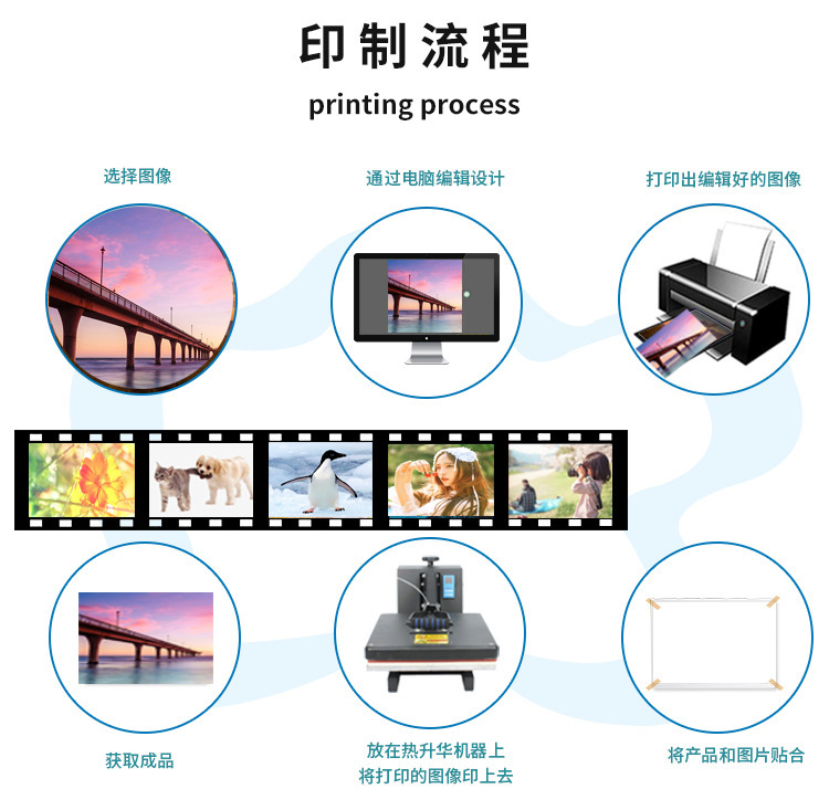 1.用热升华墨水将图案打印到彩喷纸上(或者升华纸),镜像打印。