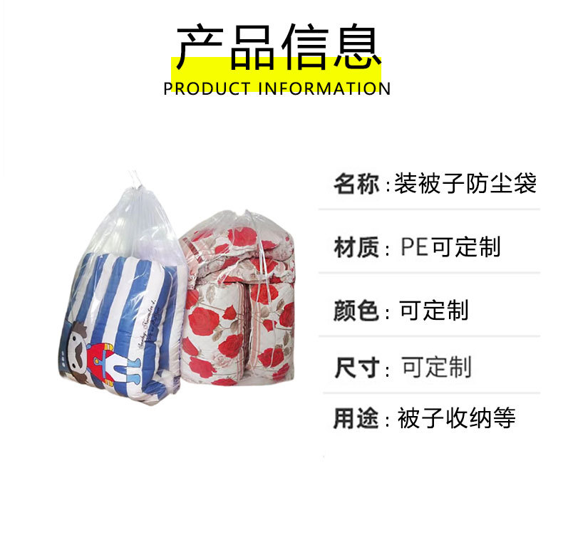 대용량 이불 가방 방진 투명 PE 조임 플라스틱 포장 가방 조임 끈 조임 끈 보관 가방
