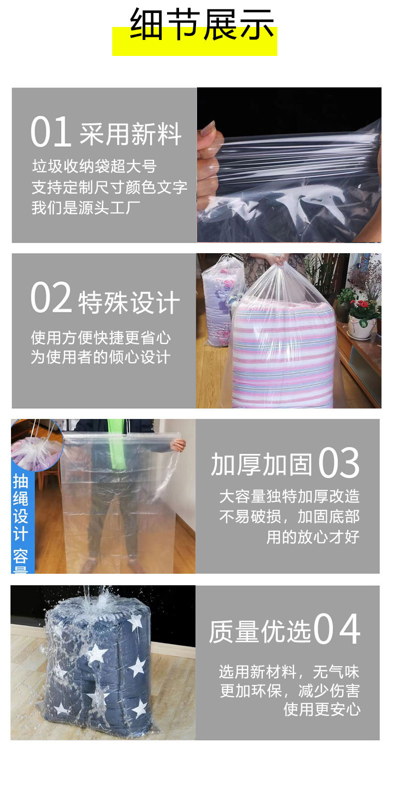 대용량 이불 가방 방진 투명 PE 조임 플라스틱 포장 가방 조임 끈 조임 끈 보관 가방스토어 가기