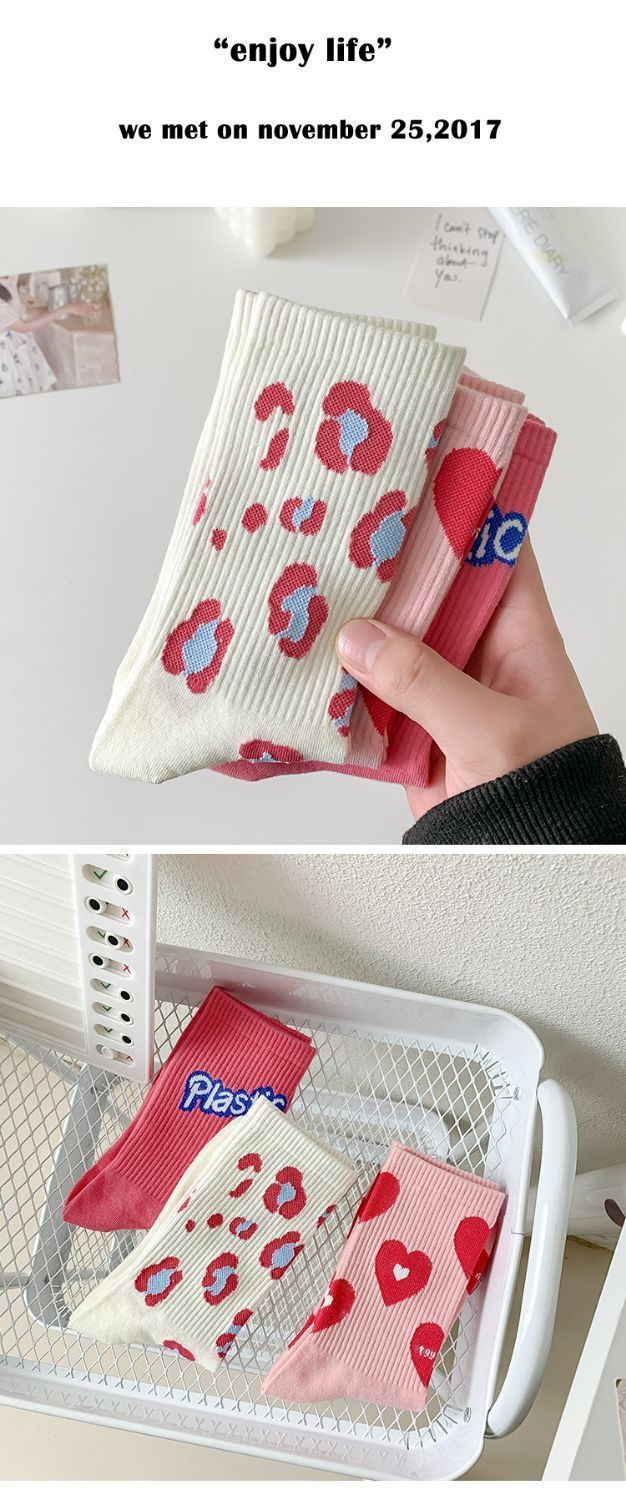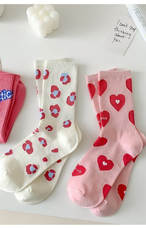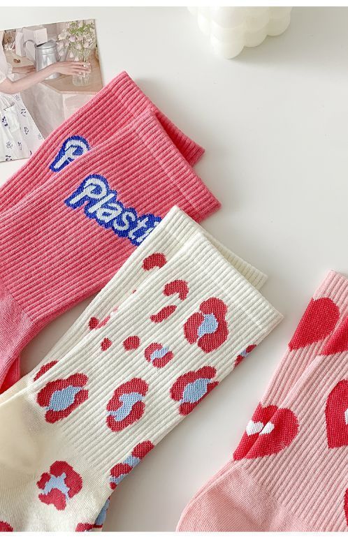 핑크 양말 여성용 봄 트렌디 모든 경기 중간 길이 양말 러브레터 귀여운 스타킹 인스 타 그램 스타일 트렌디 복장 여성 양말스토어 가기
