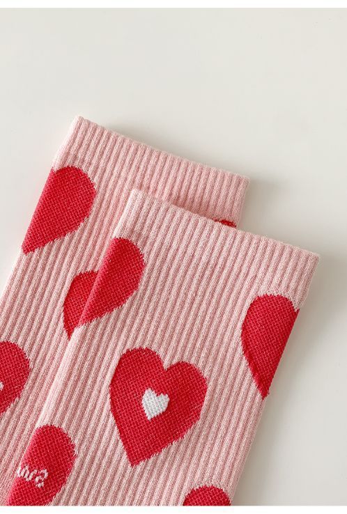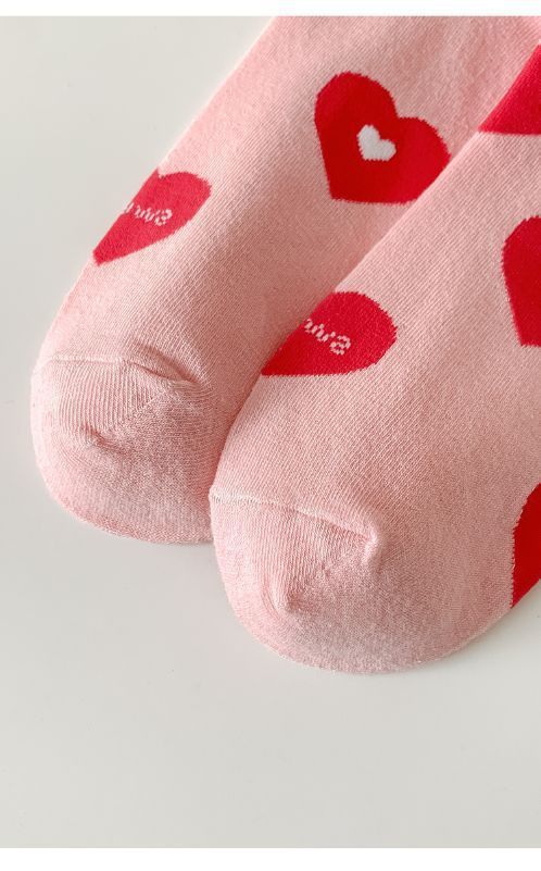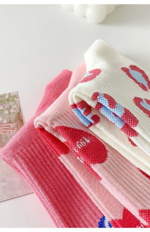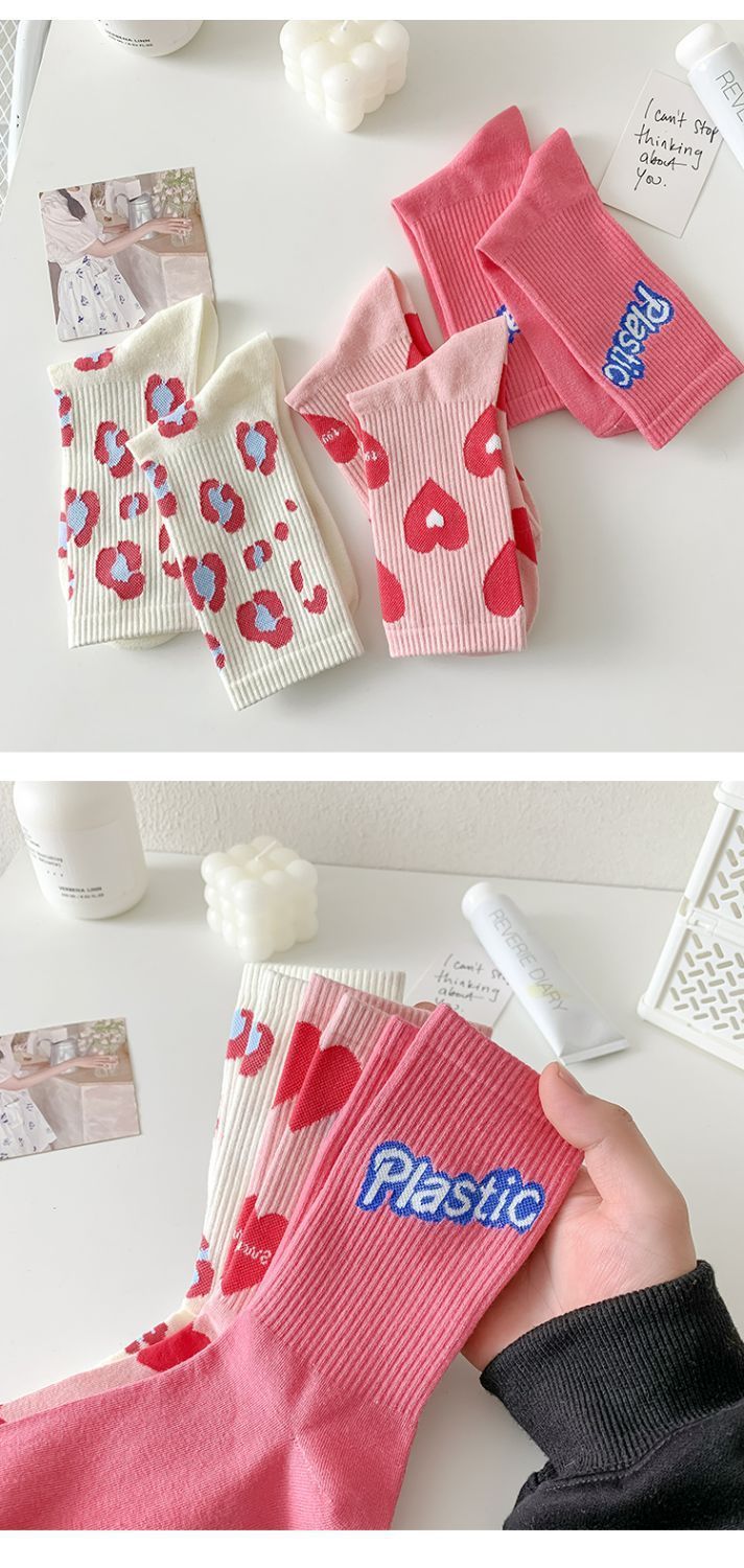 핑크 양말 여성용 봄 트렌디 모든 경기 중간 길이 양말 러브레터 귀여운 스타킹 인스 타 그램 스타일 트렌디 복장 여성 양말
