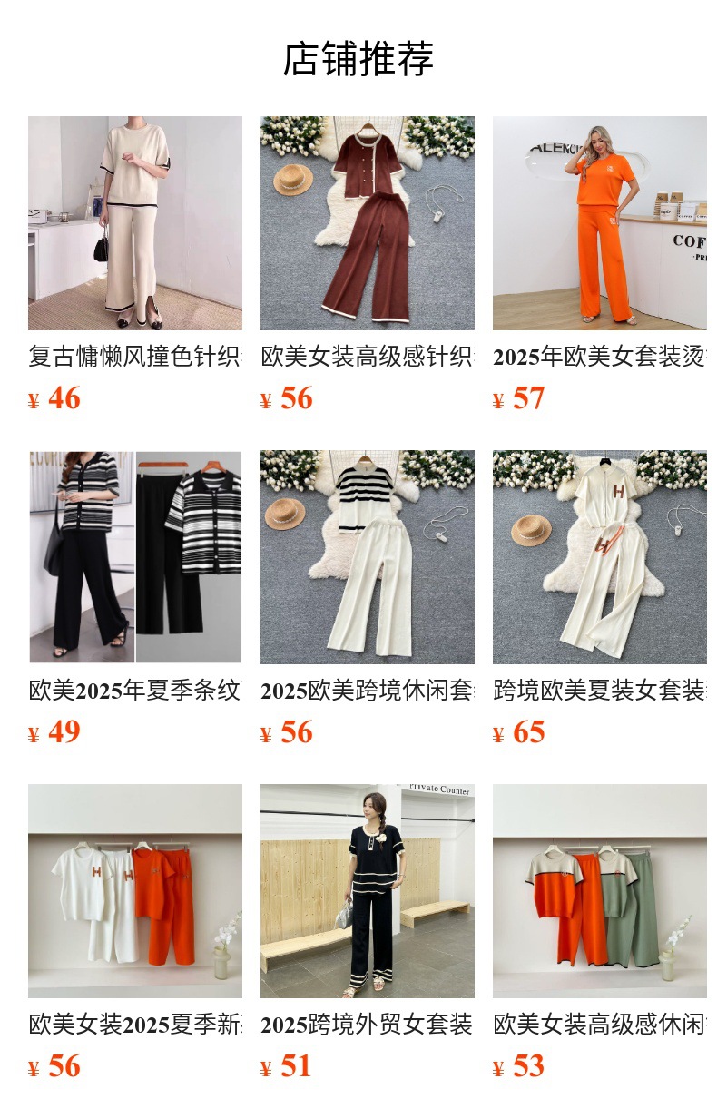 2023 New 패션 세트 기질 대비 컬러 스플릿 긴팔 스웨터 하이 웨이스트 슬림 와이드 레그 팬츠 투피스 세트스토어 가기