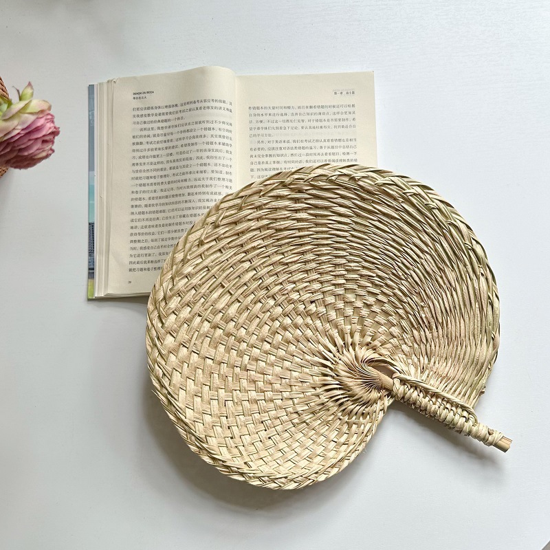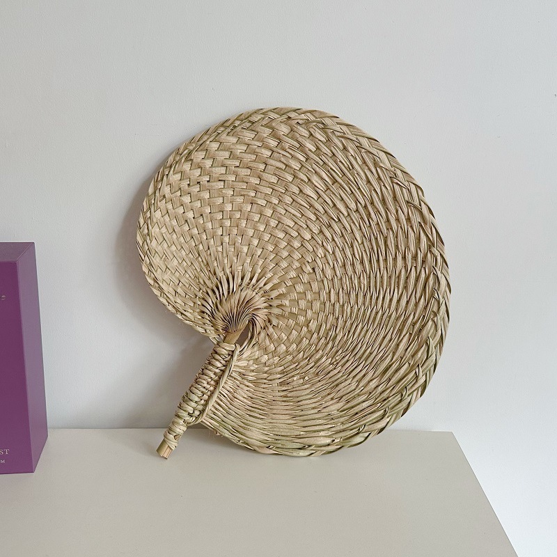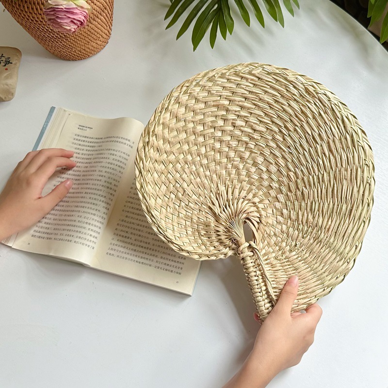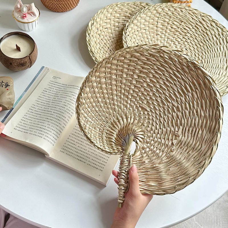 다크 브라운 잎 팬 cattail 팬 천연 수제 cattail 직조 바나나 팬 전통적인 오래 된 핸드 크랭크 팬 골동품 도매스토어 가기