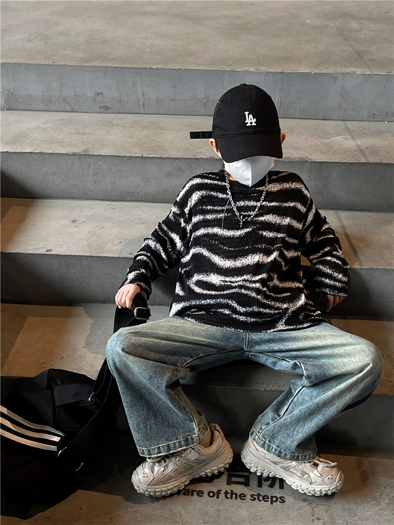 Baoduo 아동복 소년 가을 청바지 2023 신상품 남성 한국 스타일 가을 유행 느슨한 바지스토어 가기