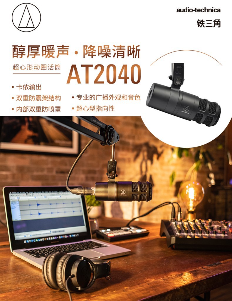 아이언 트라이앵글 (오디오 테크니카) at2040 다이나믹 마이크 오디오 북 녹음 전문 노이즈 감소